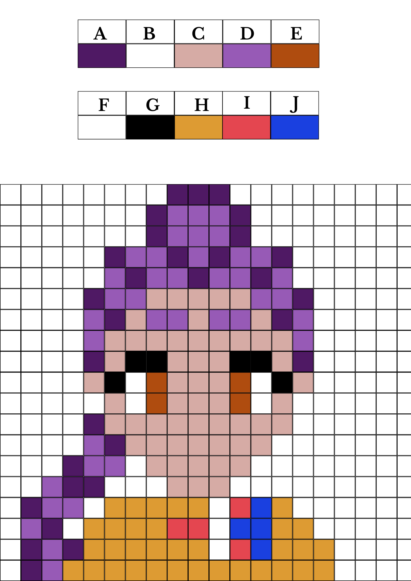 - Ak je tabuľka s farbami vyplnená, žiaci začnú plochu vyfarbovať podľa farieb v tabuľke.