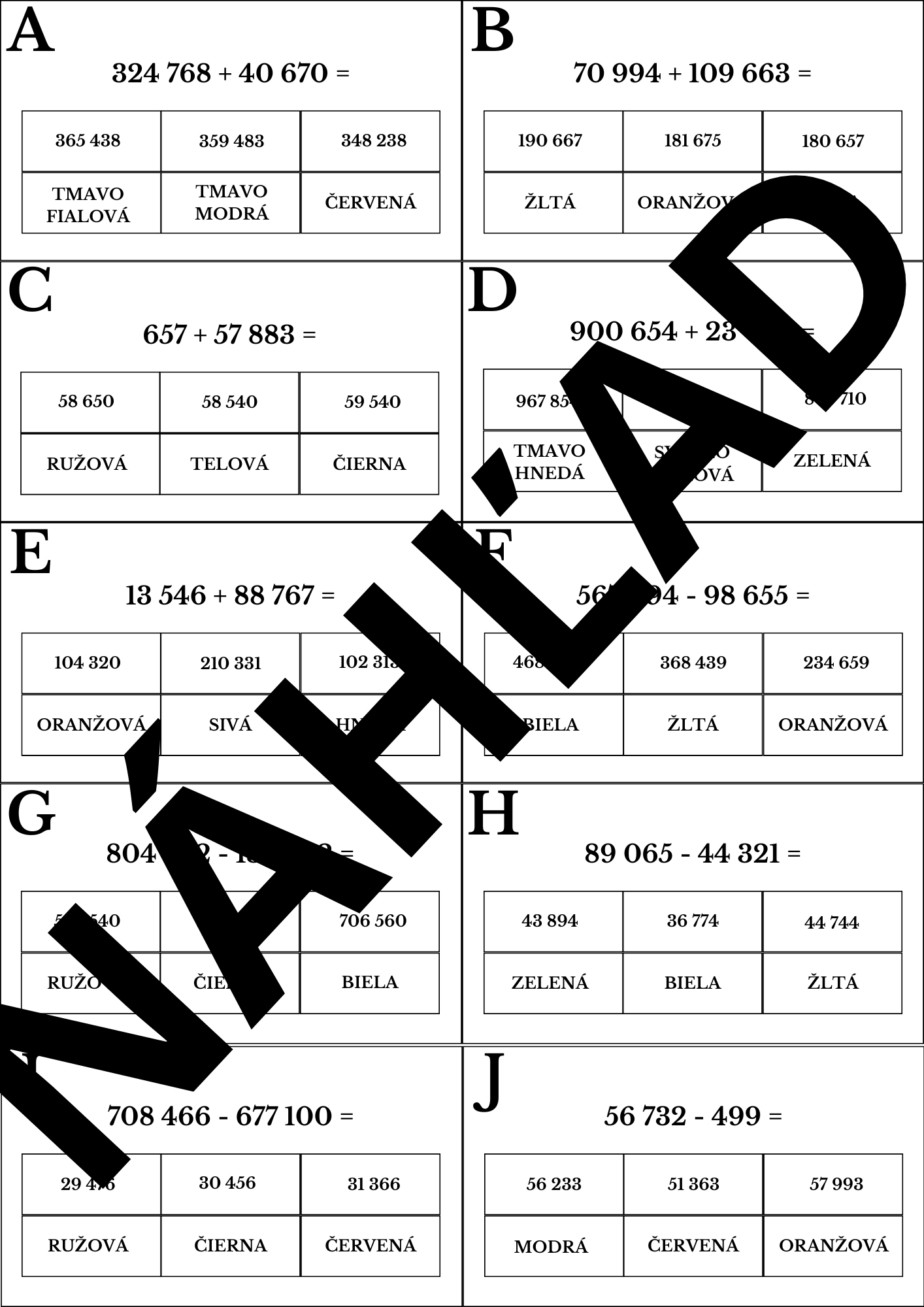 - 10 kartičiek s príkladmi a ich zadné strany