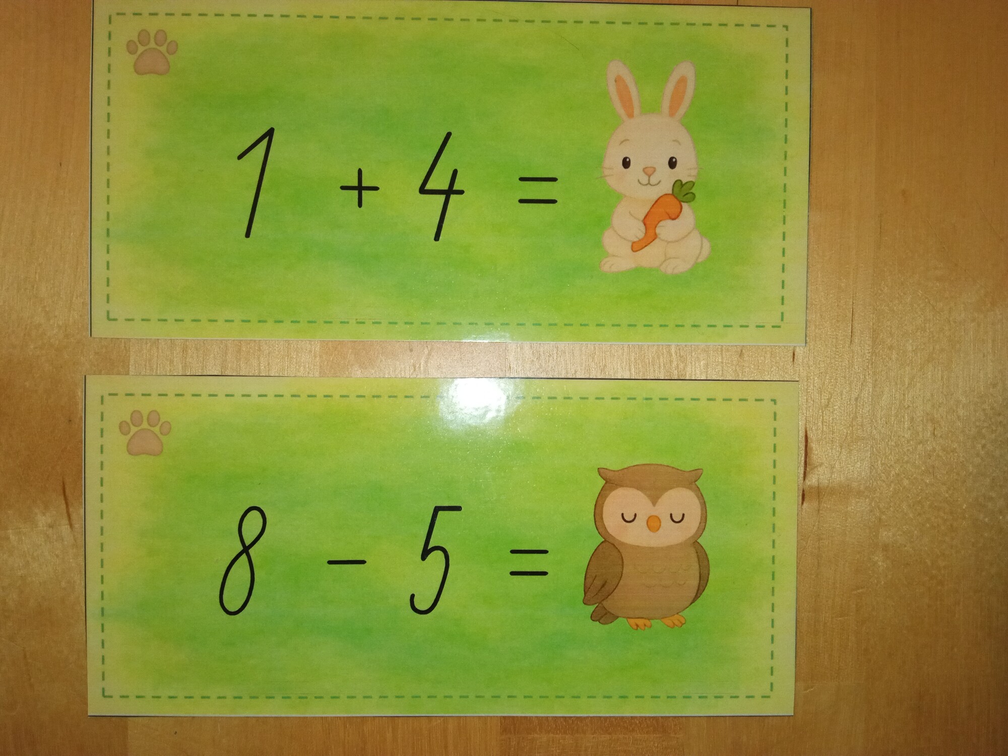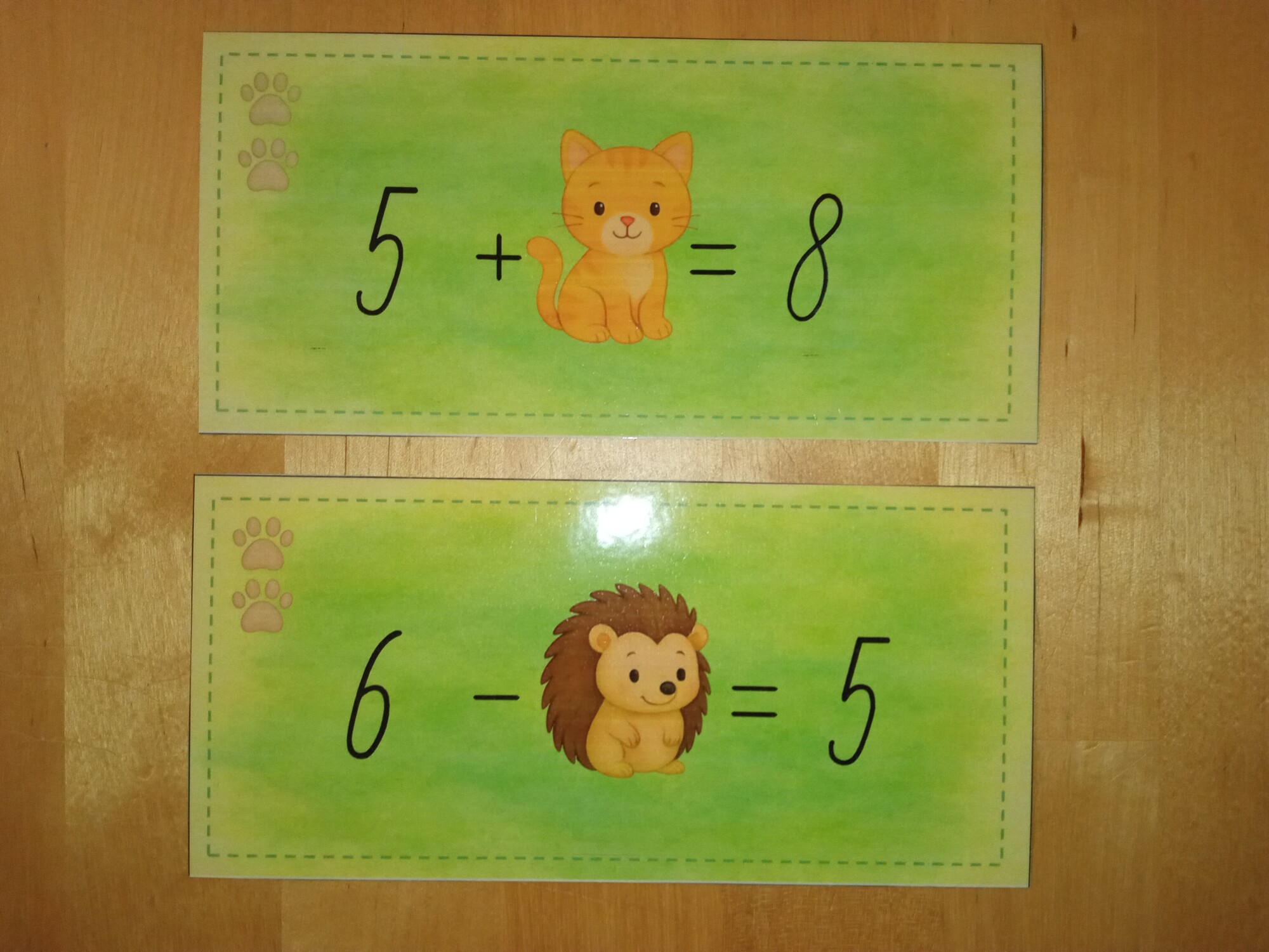 18x kartička s chýbajúcim súčtom/rozdielom (jedna labka)