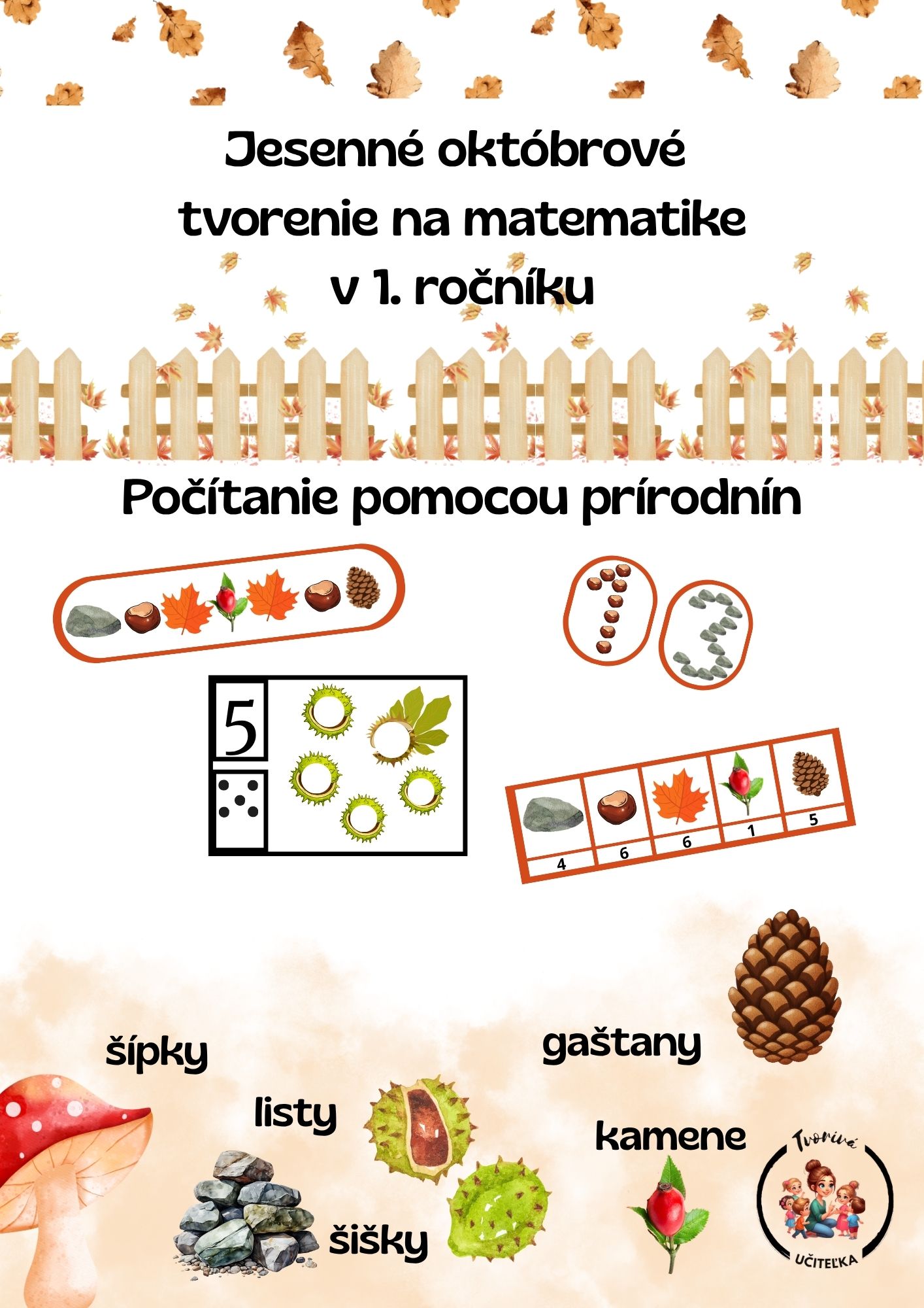 - Materiál obsahuje niekoľko kariet, ktoré používame pri počítaní na matematike v 1. ročníku pri číslach 1-6.