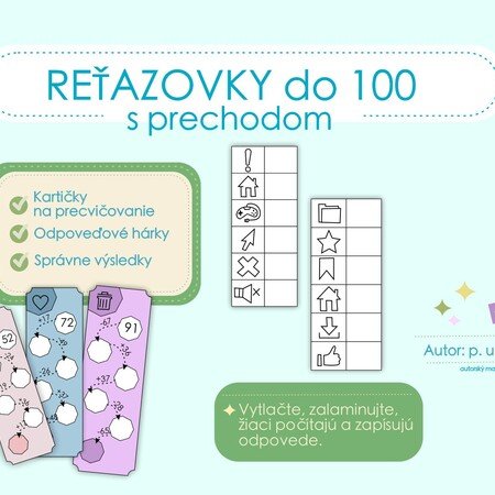 Reťazovky si vytlačte, zalaminujte a môžete ich používať dookola. Žiaci na ne môžu písať fixami na tabuľu, jednoducho výsledok zmažú a kartička je pripravená pre ďalšieho žiaka.