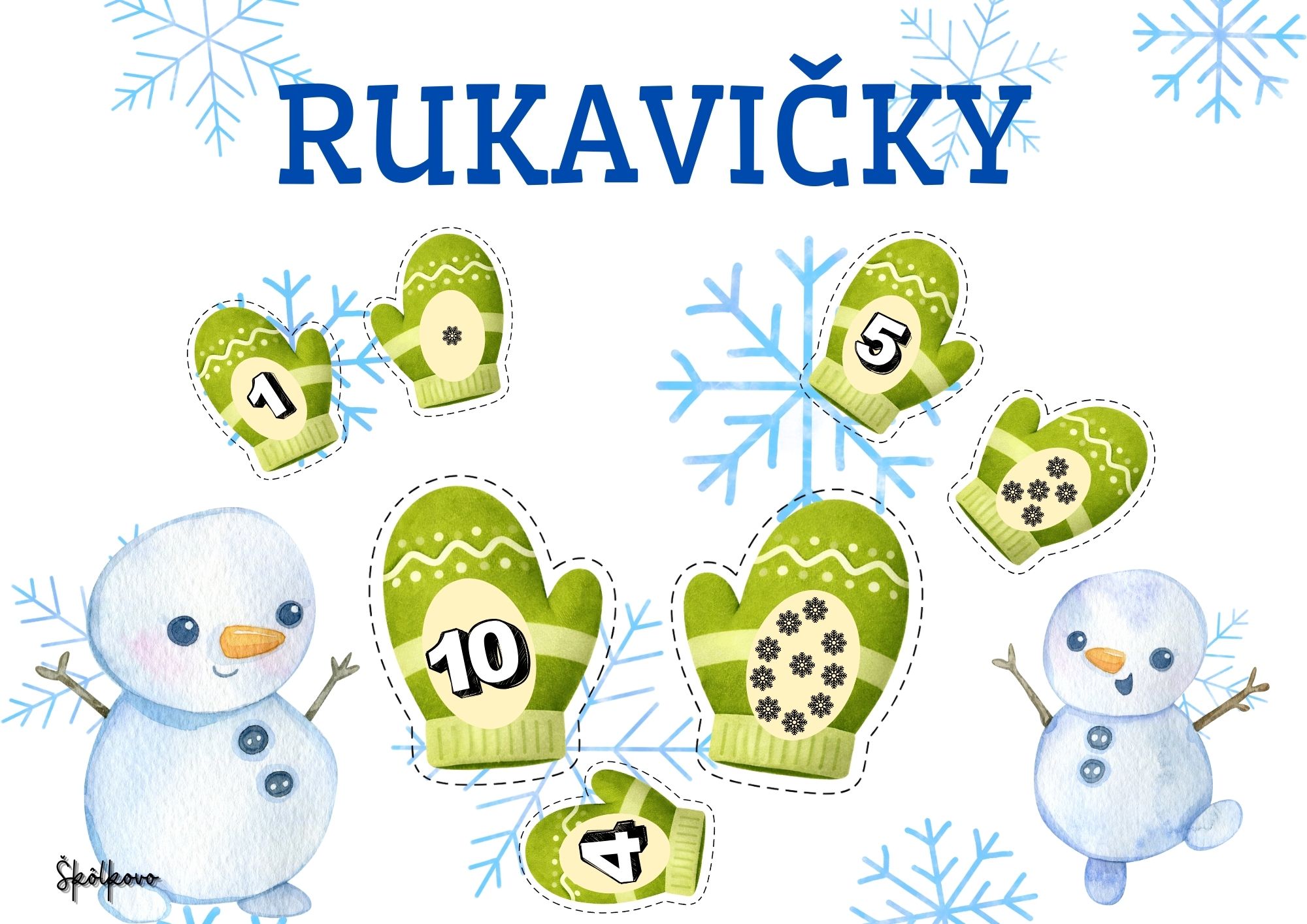 - Aktivita Rukavičky je zameraná na rozvoj predstavy o počte. Deti vytvárajú páry rukavíc na základe zhody medzi číslom a počtom vločiek. Na jednej rukavici je zobrazené číslo a úlohou dieťaťa je priradiť k nej rukavicu s počtom vločiek, ktorý zodpovedá danému číslu.
