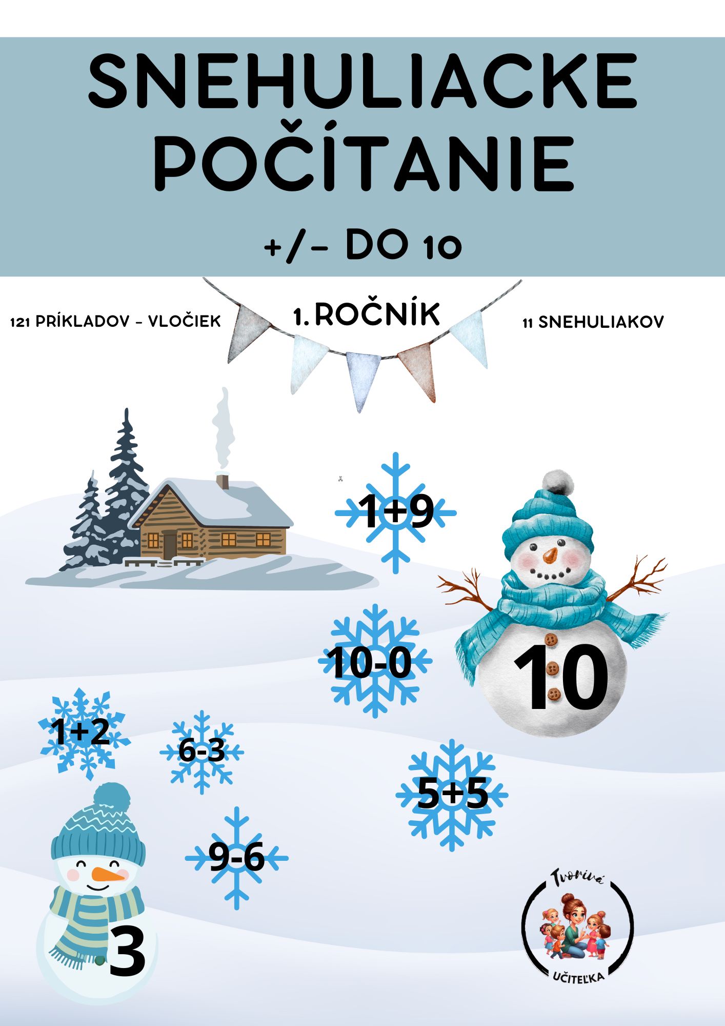 - Materiál obsahuje 11 snehuliakov a 121 príkladov - vločiek.