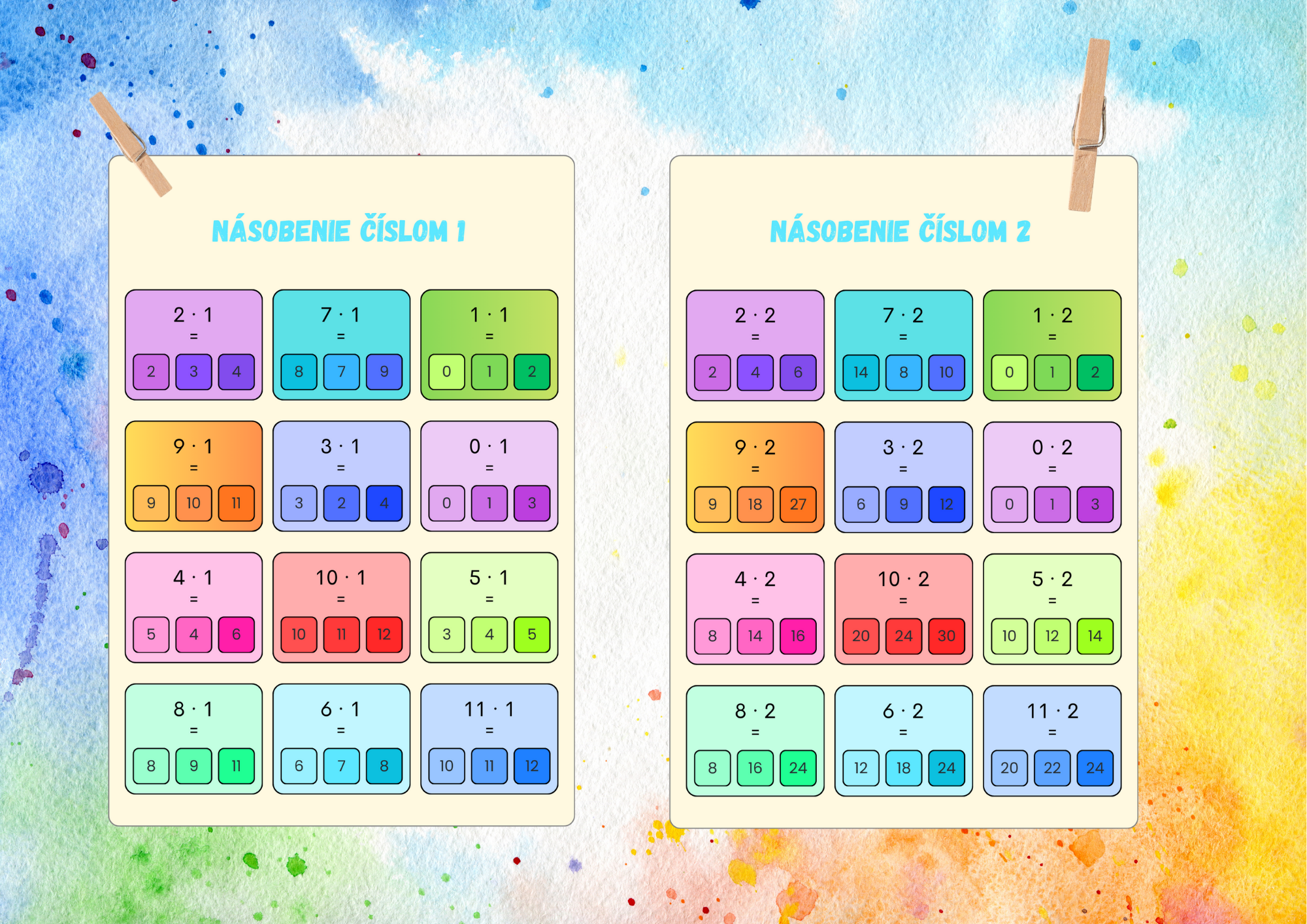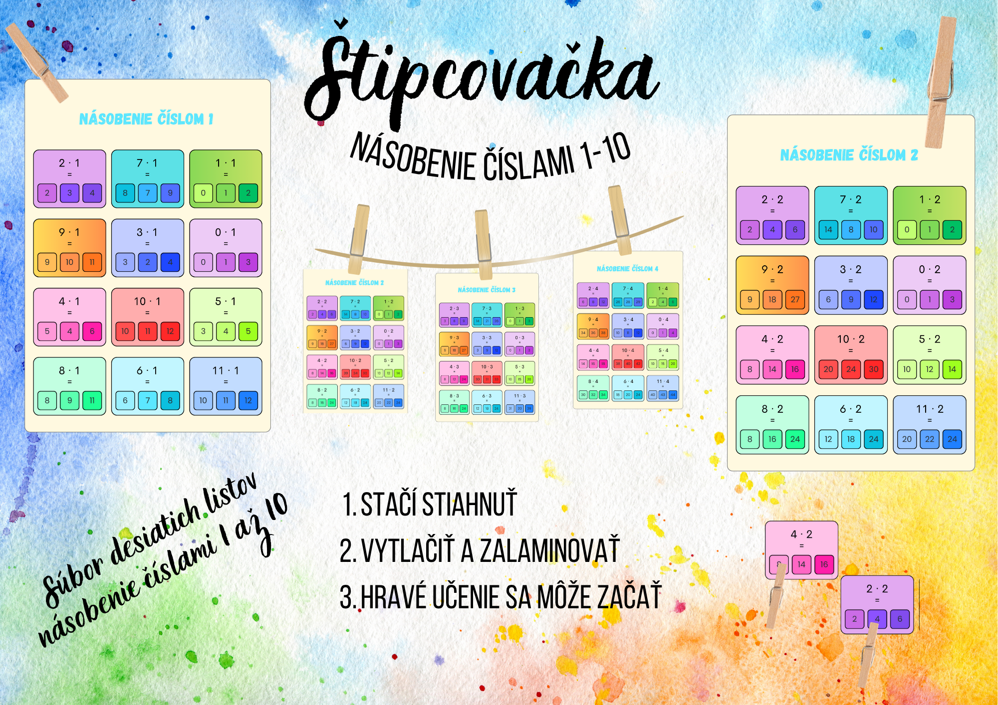 1. Dieťa si vyberie kartičku so zadaním (napr. 7 · 1 = ?).