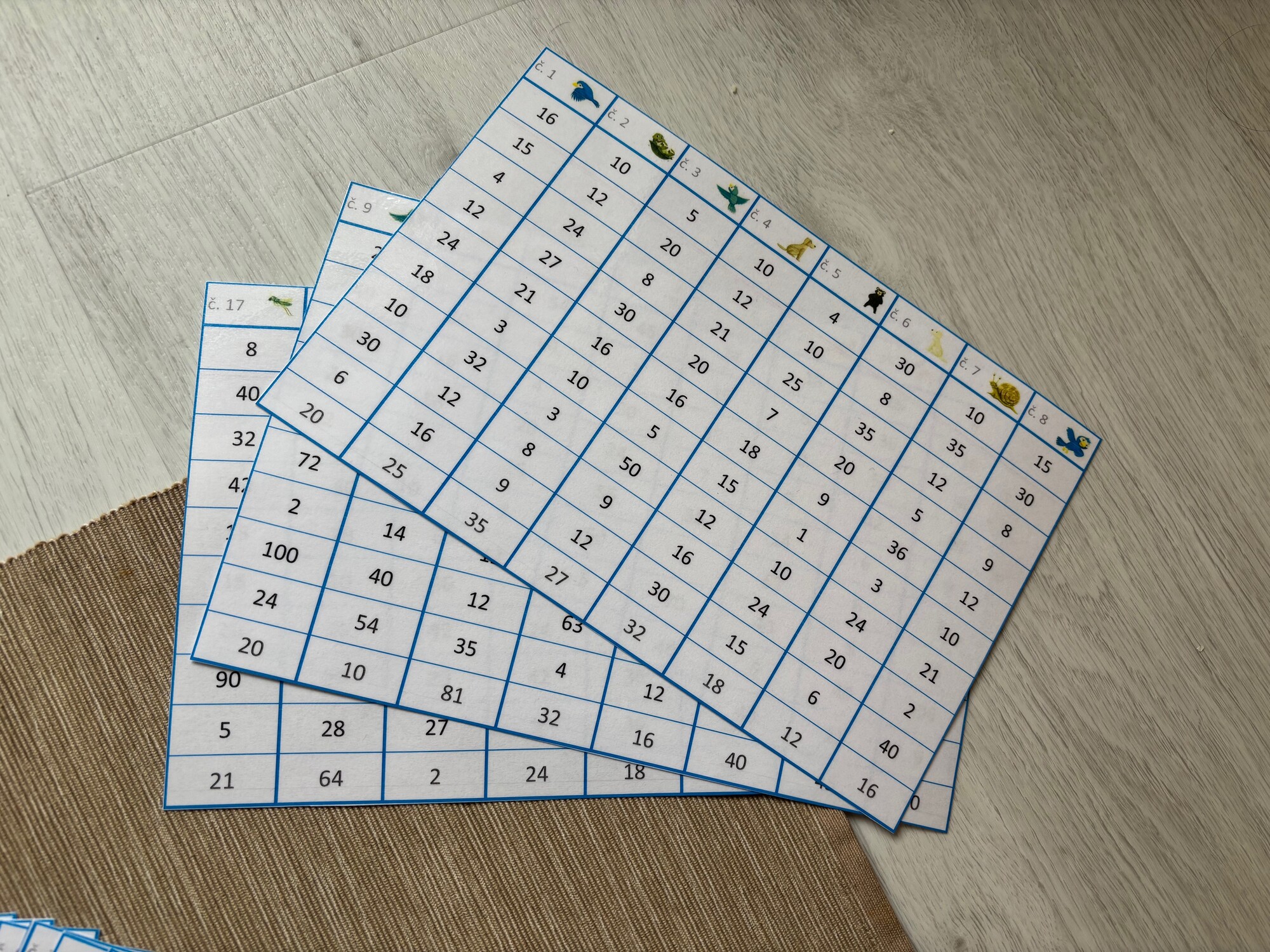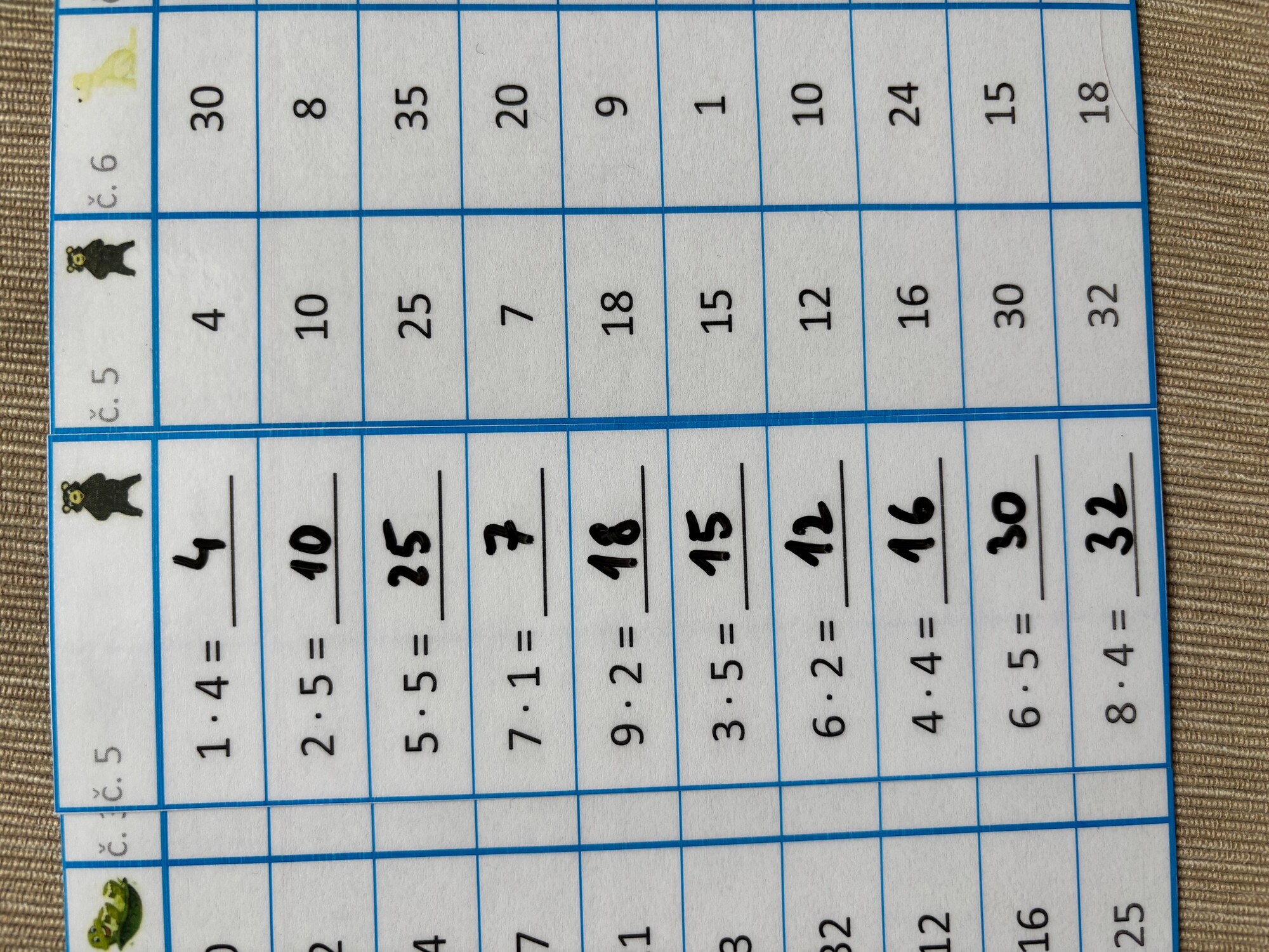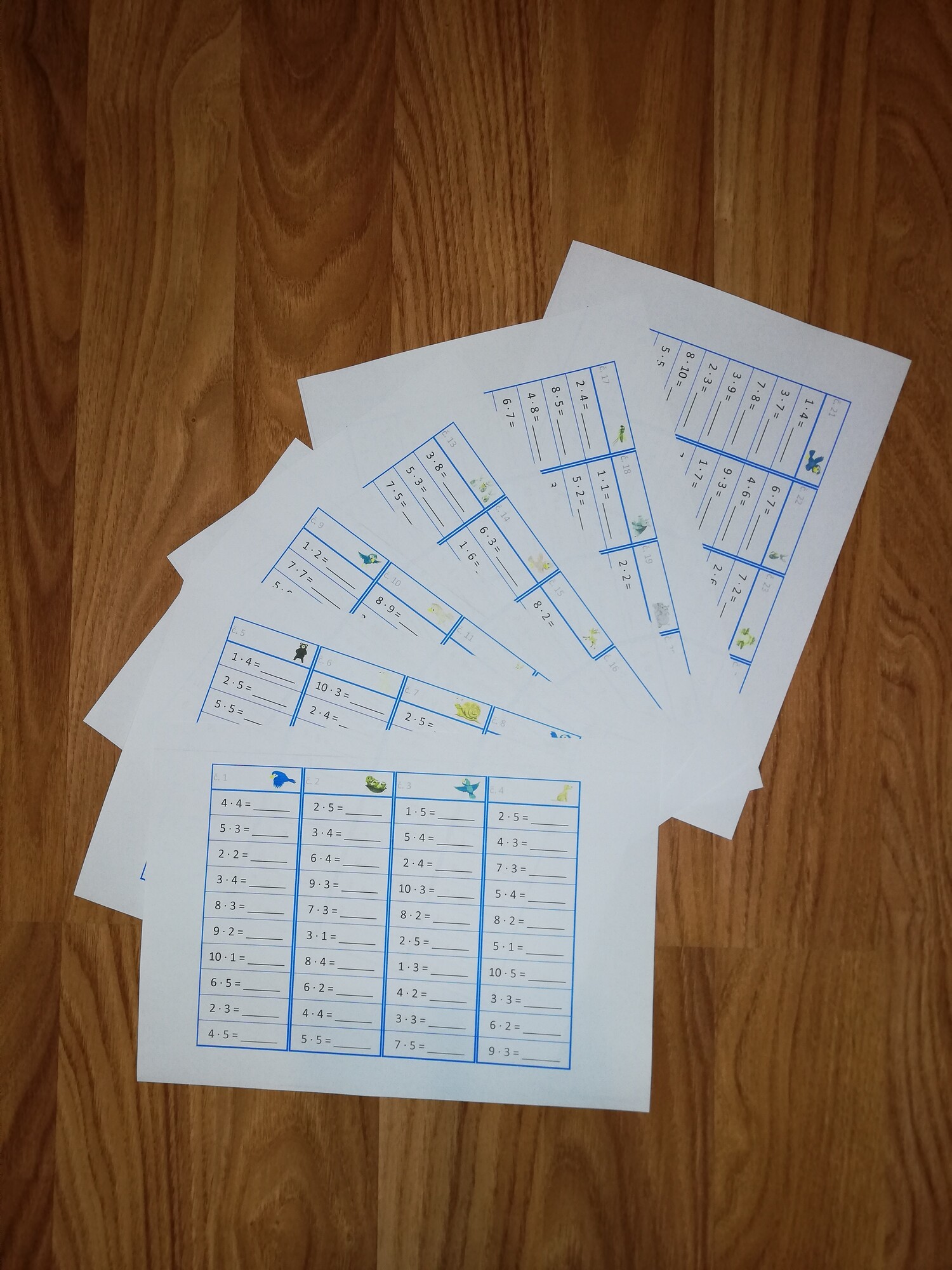 Jednoduchá aktivita na rýchle a efektívne precvičenie násobilky. Prvá časť (8 stĺpčekov) obsahuje príklady z násobilky 1-5, zvyšok príkladov (16 stĺpčekov) je mix násobilky 1-10. Materiál má niekoľko možností využitia, je možné vytlačiť ako pracovné listy, prípadne vytlačiť, zalaminovať a používať ako jednotlivé stĺpčeky s mazacou fixkou. Obsahuje 24 stĺpčekov, v každom je 10 príkladov, celkom teda 240 príkladov. Vrátane prehľadného riešenia vo forme tabuľky na jednoduchú kontrolu.
