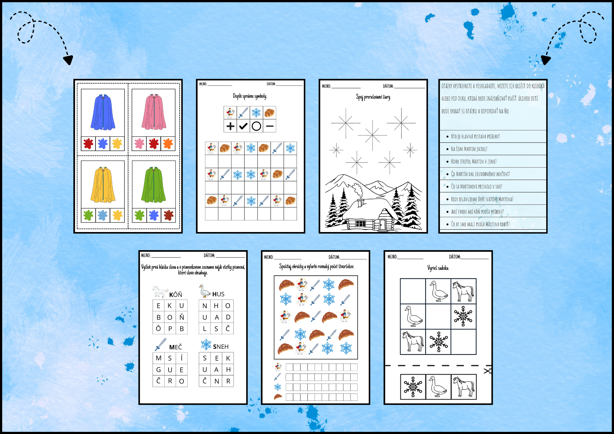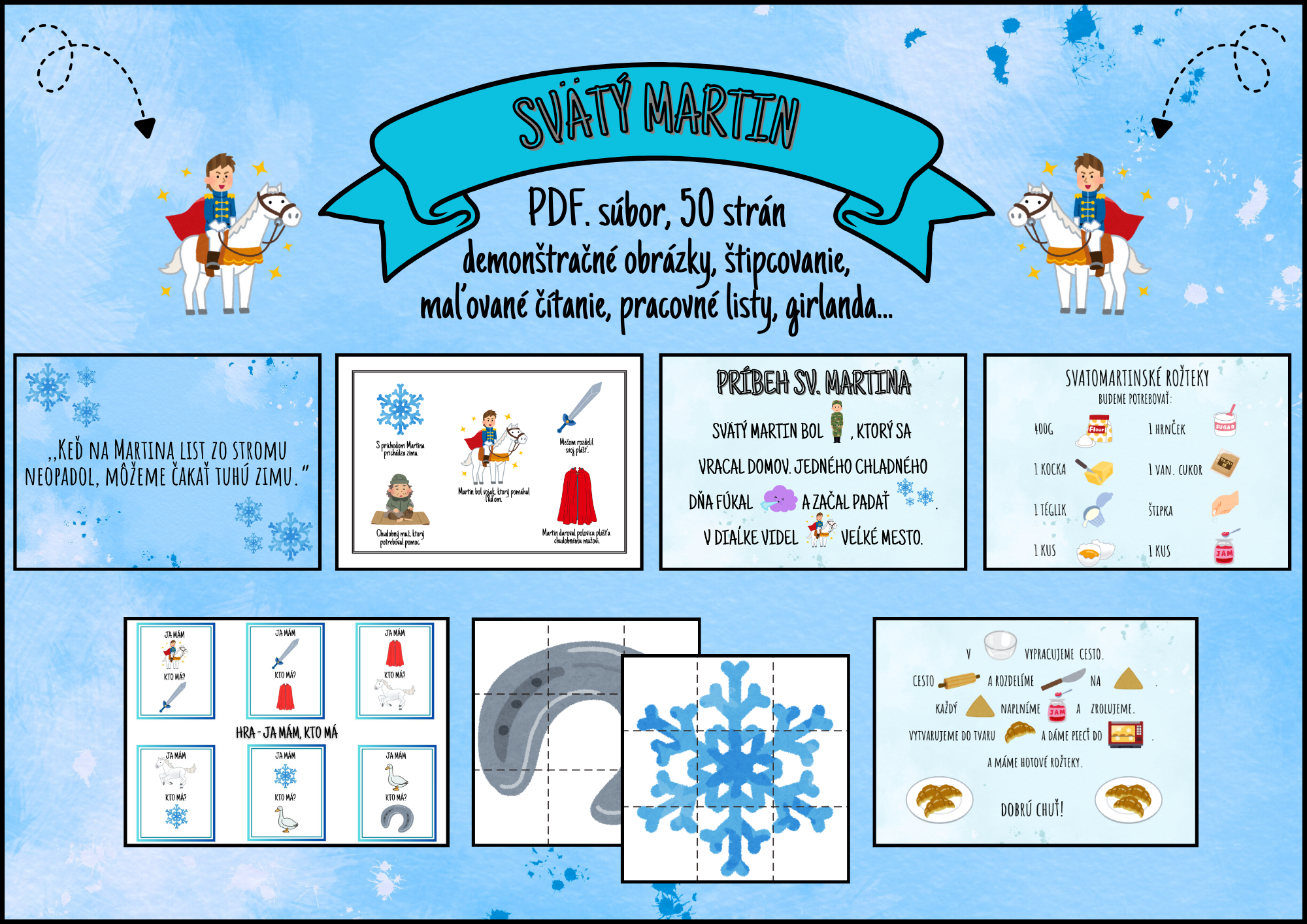 Milé pani učitel'ky, vychovávateľky, rodičia. Pripravila som si pre vás 49 strán pracovných listov na tému „Svätý Martin.” V tomto PDF. súbore nájdete: