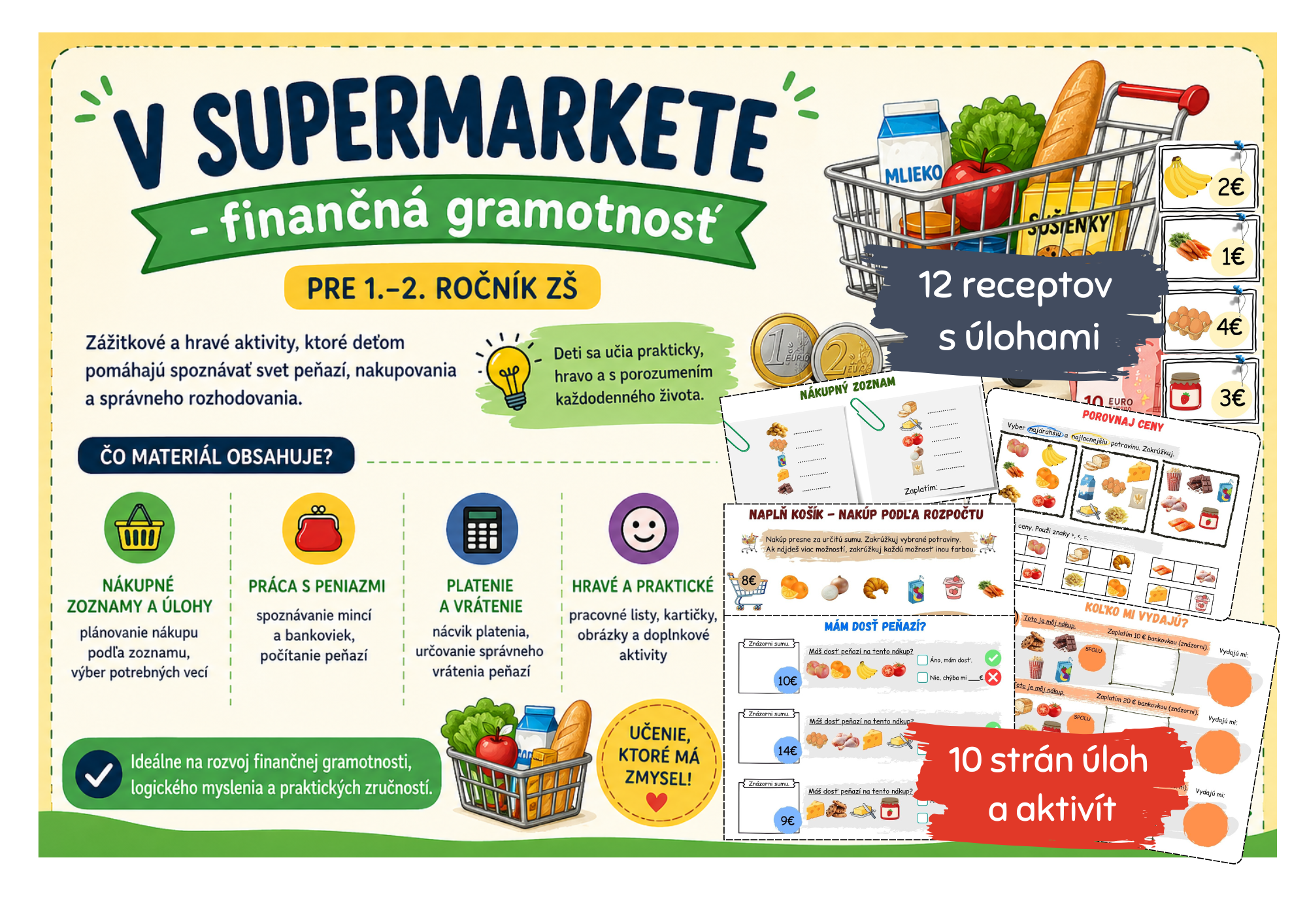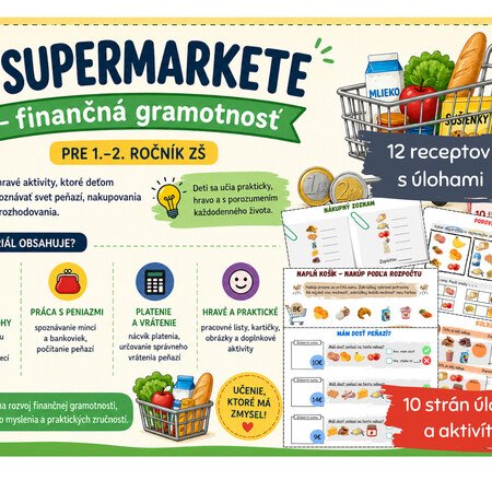 Materiál obsahuje rôznorodé aktivity, ktoré rozvíjajú finančnú gramotnosť, logické myslenie aj matematické zručnosti.