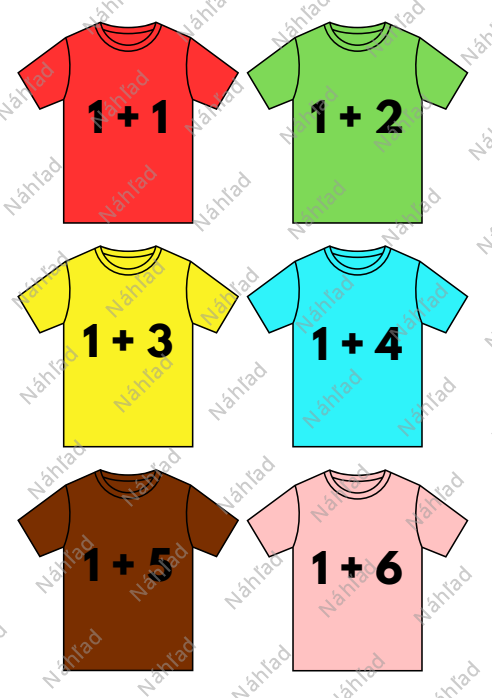 Materiál obsahuje 45 kartičiek príkladov na sčitovanie do 10 vo farebnej alebo čiernobielej verzii.