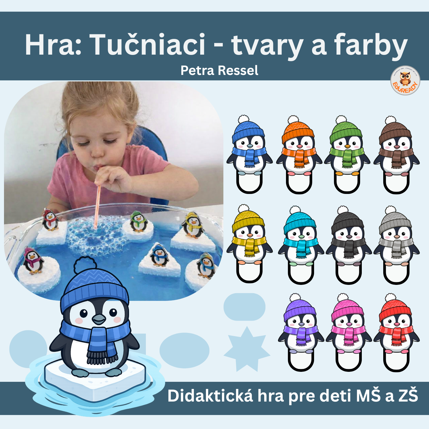 Originálna zážitková a experimentálna aktivita s témou polárnych zvierat, ktorá deti okamžite vtiahne do hry. Deti si vytvoria vlastnú ľadovú krajinu s tučniakmi, pozorujú pohyb na vode a učia sa prostredníctvom hry, skúmania a zmyslového zážitku. Súbor obsahuje hotovú prípravu.