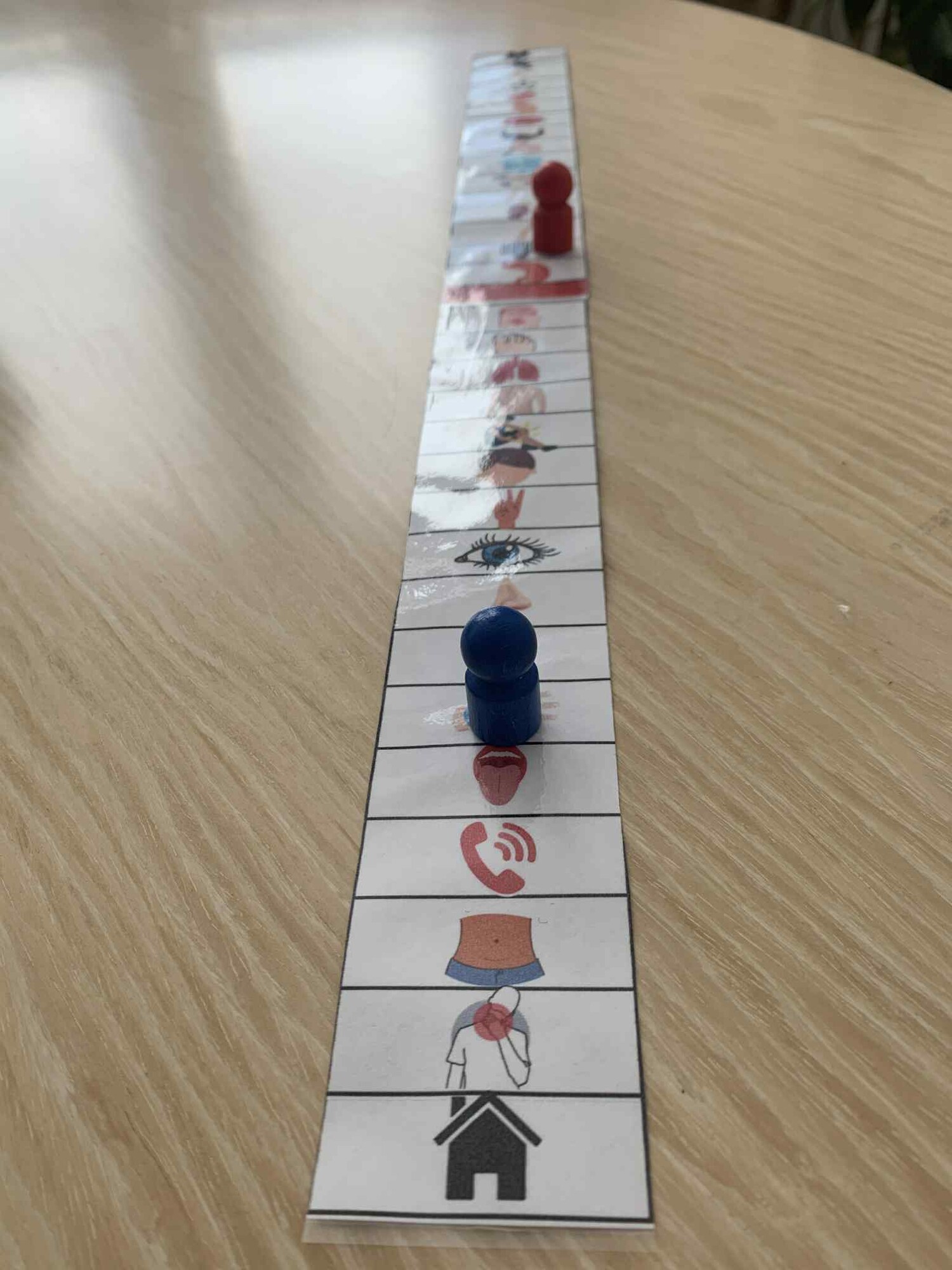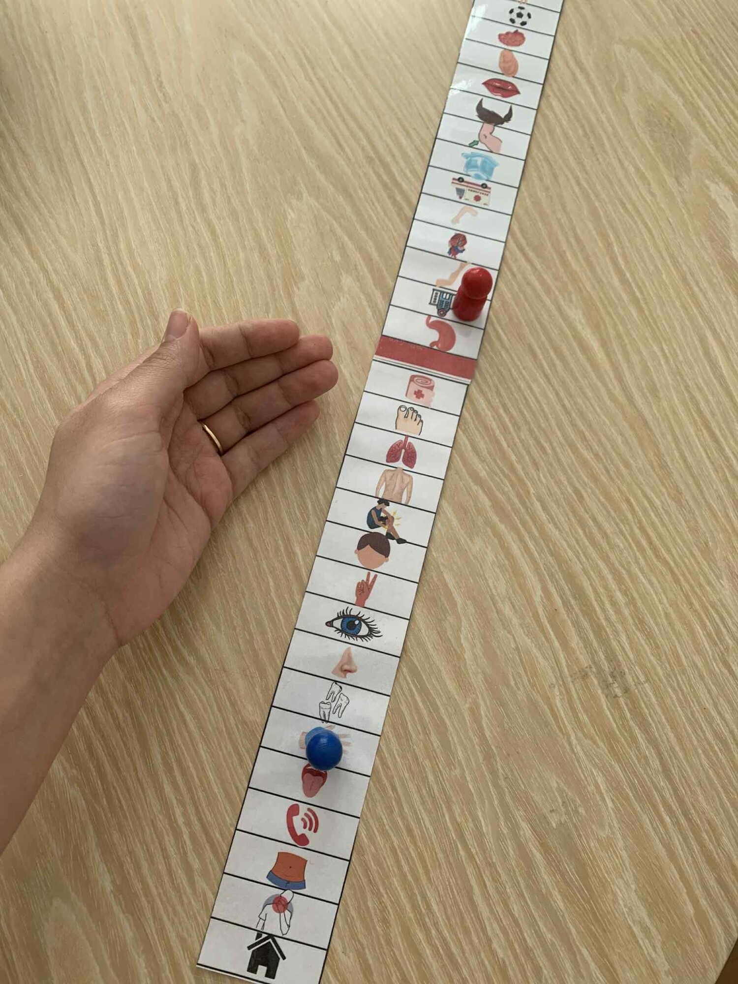 Pravidlá: Hru hrajú dvaja žiaci. Každý postaví svoju figúrku na domček. Cieľom hry je dostať sa čo najskôr na červené políčko tým, že správne pomenujeme obrázky. Ak žiak hodí kockou a nevie pomenovať obrázok, vráti sa na začiatok hry (do domčeka). Správne odpovede nie sú. žiaci sa medzi sebou kontrolujú. Ak potrebujú pomoc alebo sa nevedia dohodnúť, učiteľ rozhodne. Jeden obrázok môže byť pomenovaný viacerými spôsobmi. Vy určte, či sa budete držať len toho, čo je v konkrétnej lekcii, alebo žiakom dovolíte využívať synonymnú slovnú zásobu z iných lekcií, ktoré už absolvovali.