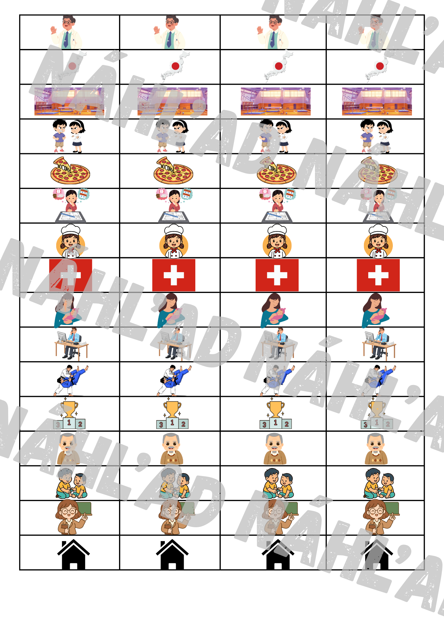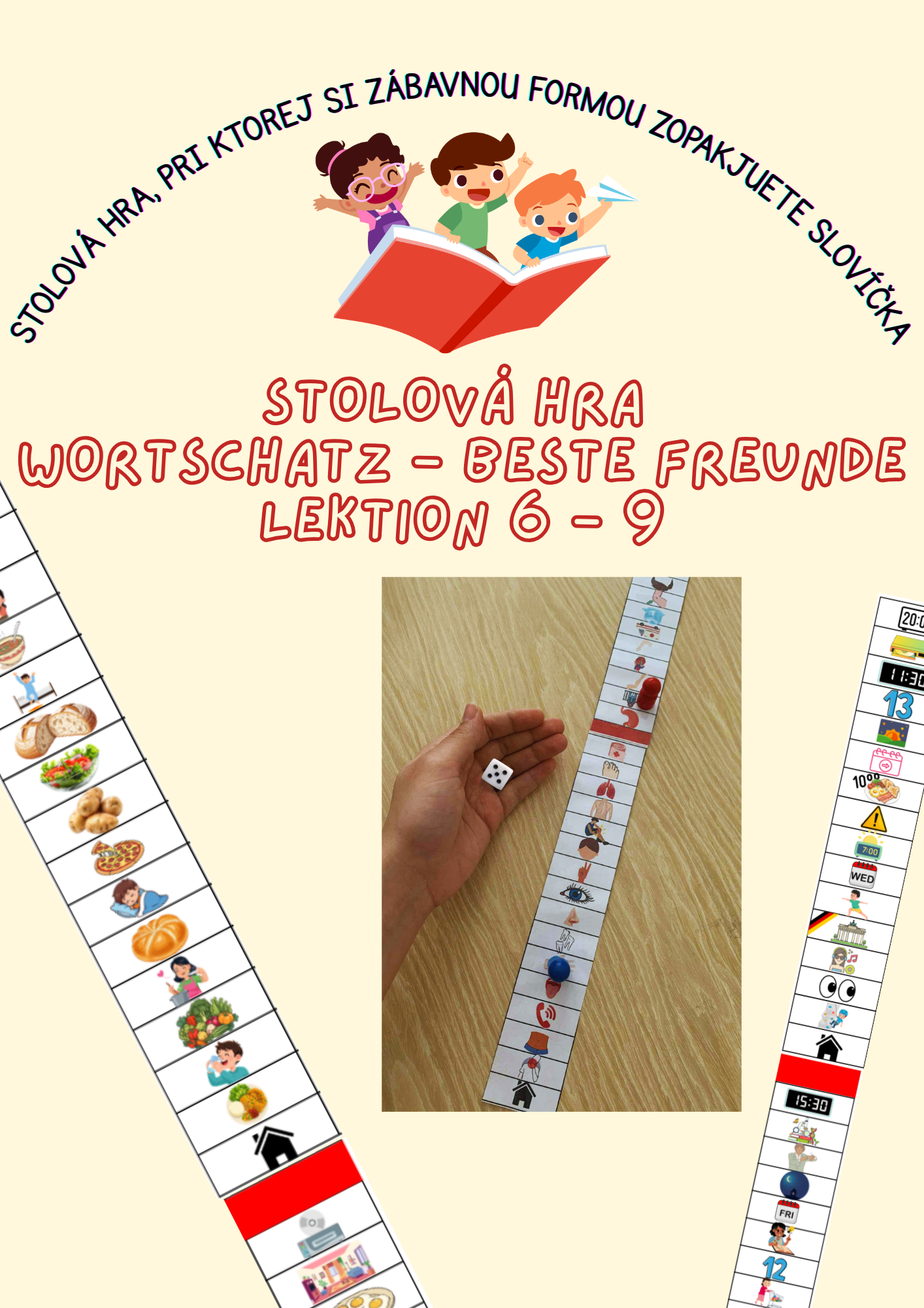 Súbor obsahuje 4 hry na opakovanie slovnej zásoby z lekcií z učebnice Beste Freunde. Slová sú vyberané presne podľa toho, aby sa v hre objavili nové slová z lekcie (presne podľa toho, ktoré určuje učebnica a pracovný zošit). Aby bola tlač efektívnejšia, na jednej strane je jedna časť hry 4x. Jedna hra pozostáva zo stĺpca na dvoch stranách, ktoré potom spojíme počas laminovania do jednej veľkej hracej dosky.