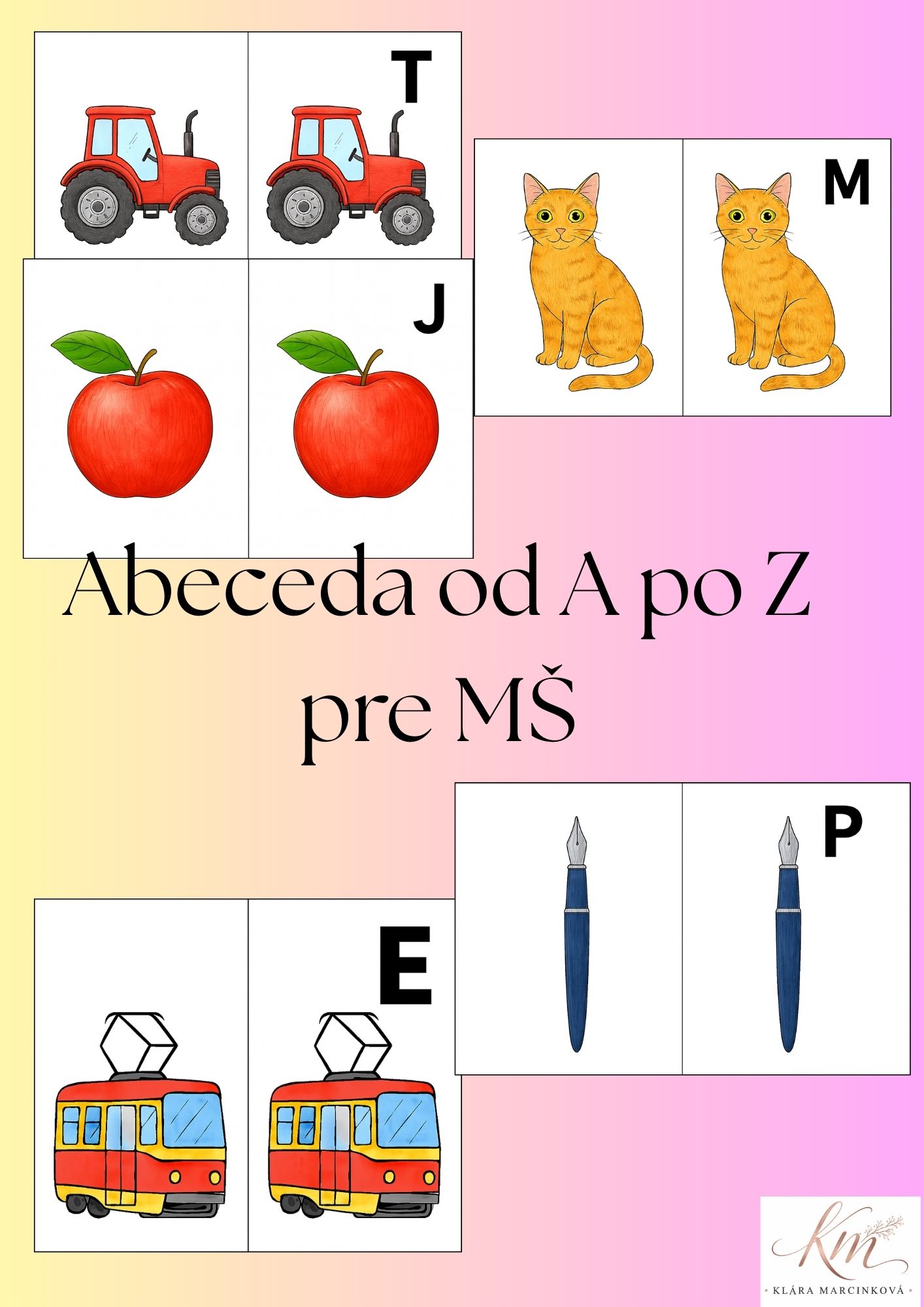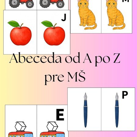 - pracovné listy k jednotlivým hláskam vo farbenej a čiernobielej verzii.