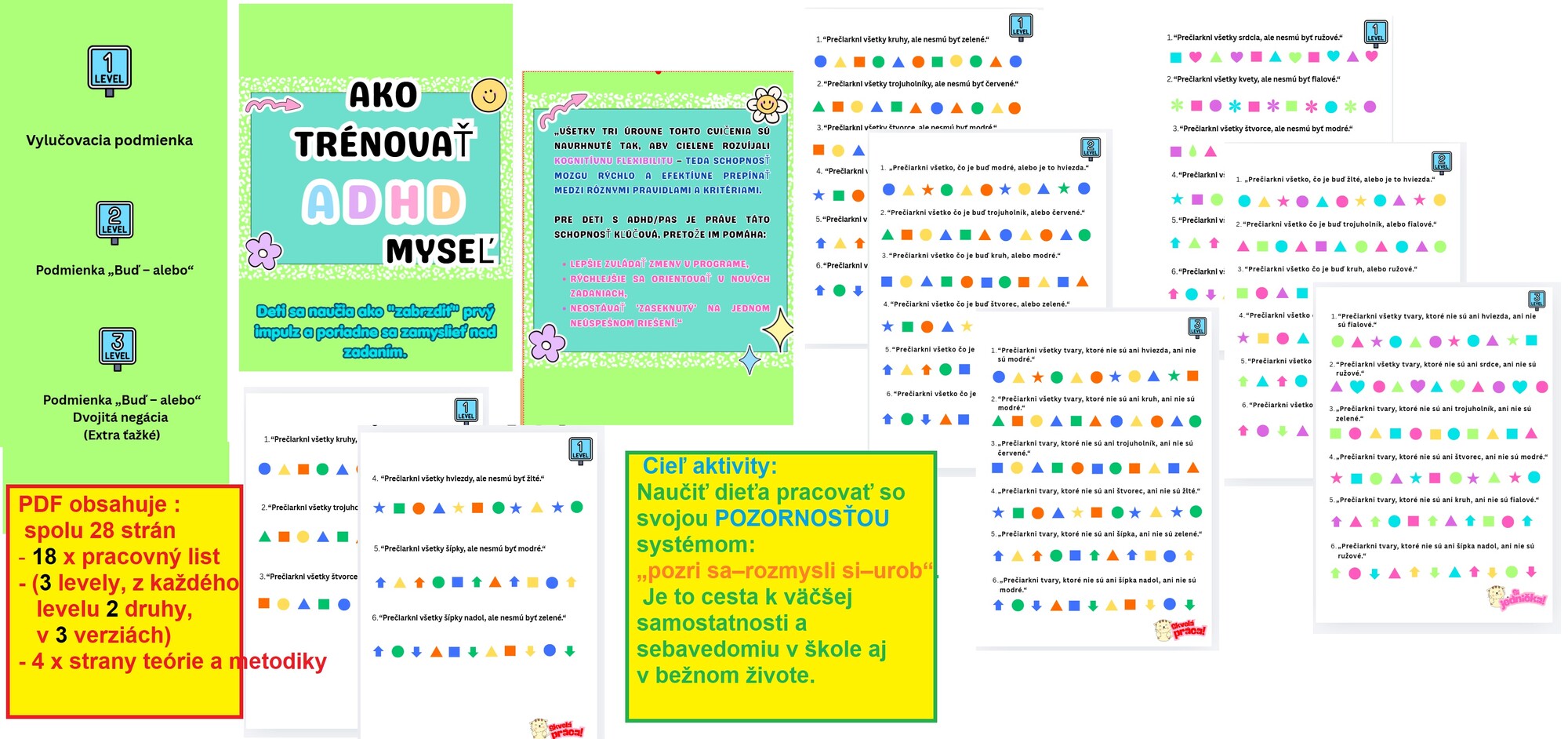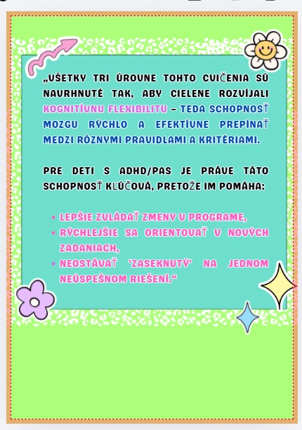 Štúdijný materiál je zameraný na rozvoj kognitívnej flexibility u neurodivergentných detí prevažne s ADHD, no je skvelým cvičením aj pre všetky deti.
