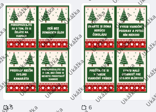 Materiál odporúčam zalaminovať pre opakované použitie. Z kartičiek si môžete vytvoriť vlastný adventný kalendár - kartičky uložte do vrecúšok a pridajte napr. malú sladkosť.