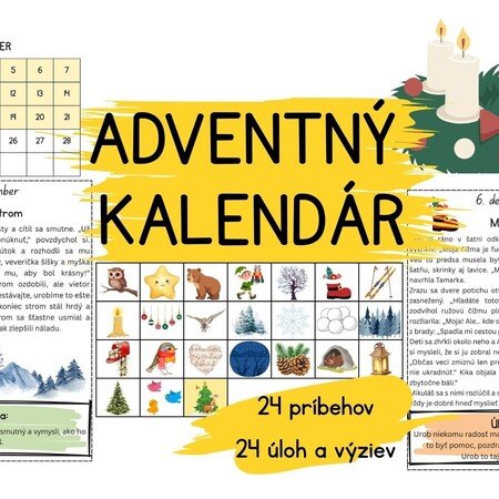 24 krátkych príbehov s jednoduchými úlohami pre každý deň. Ku každému príbehu je malý obrázok, ktorý si deti môžu nalepiť do kalendára. Príbehy podporujú predstavivosť, kreativitu a sociálne zručnosti (spolupráca, pomoc druhým, vďačnosť) a sú vhodné do školy aj domov. Úlohy sú jednoduché, nezaberú veľa času a prinášajú deťom každodenný pocit úspechu a radosti. Ideálny spôsob, ako spríjemniť predvianočný čas, podporiť čítanie a tvorivosť a vytvoriť radosť z každého dňa.