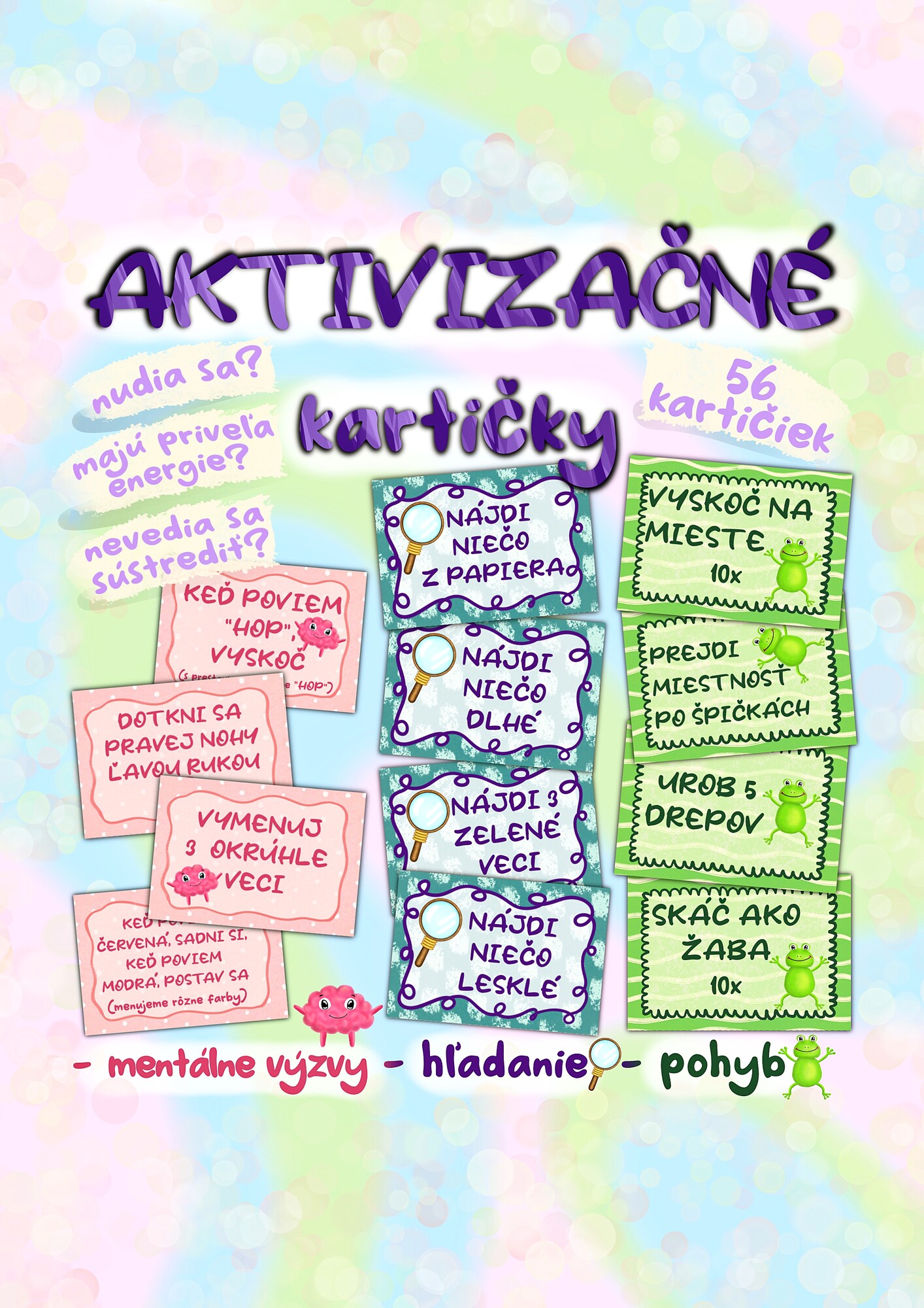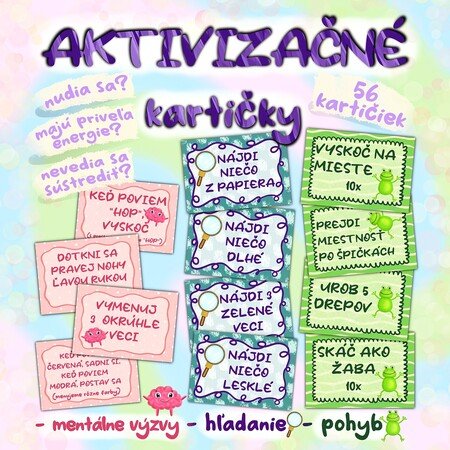 Potrebujete usmerniť energiu alebo zlepšiť sústredenie detí? 56 aktivizačných kartičiek, ktoré deti rozhýbu, zapoja aj zabavia za pár sekúnd.