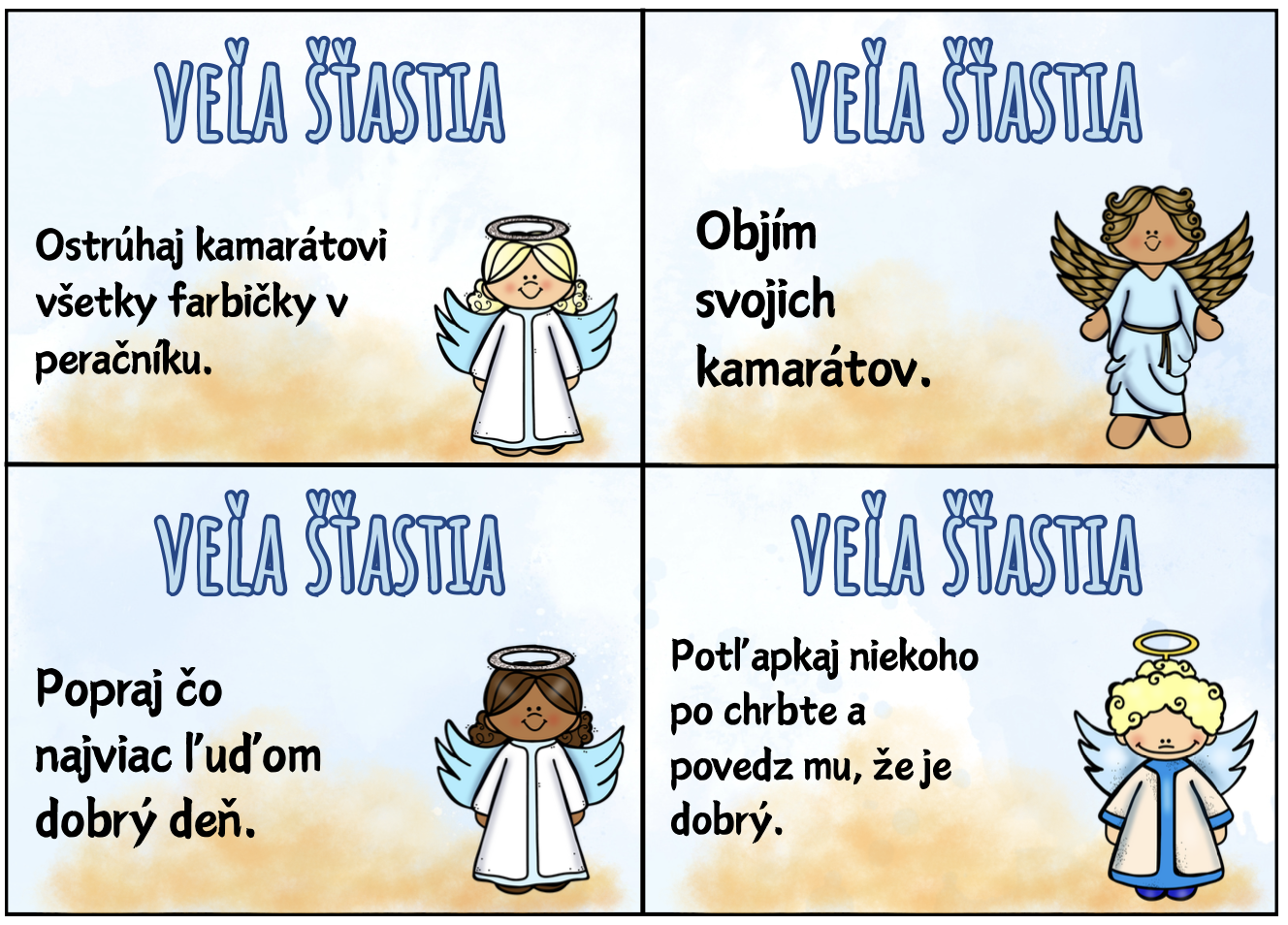 - každý žiak si vylosuje jednu kartičku a počas dňa ju splní,