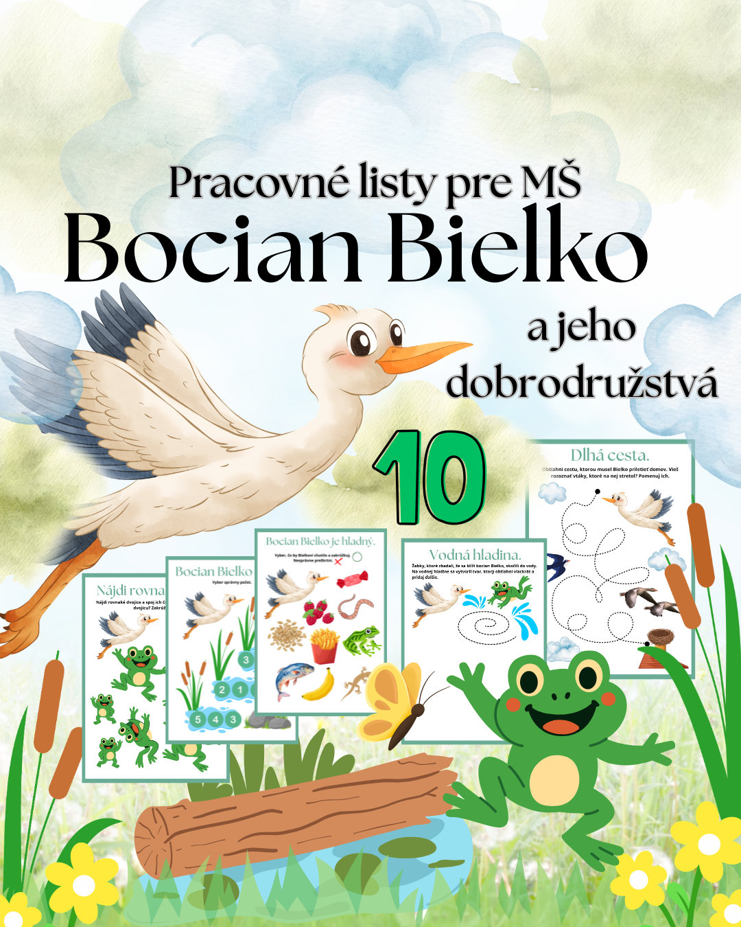 Bocian Bielko – 10 pracovných listov pre MŠ