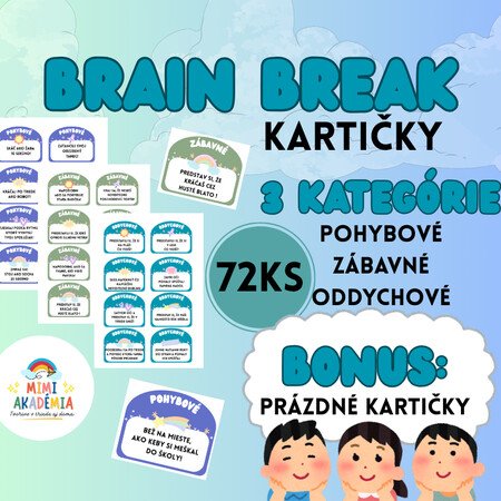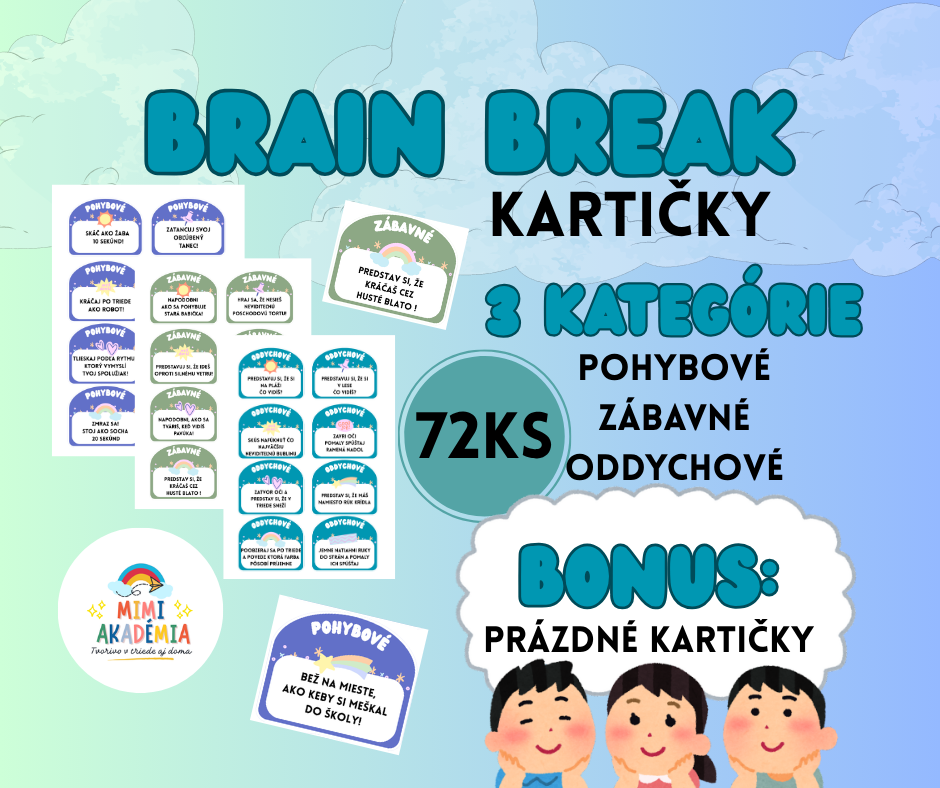 Deti potrebujú počas vyučovania nielen vedomosti, ale aj priestor na oddych, pohyb a smiech. Práve preto vznikol tento materiál – jednoduchý, praktický a ľahko použiteľný.