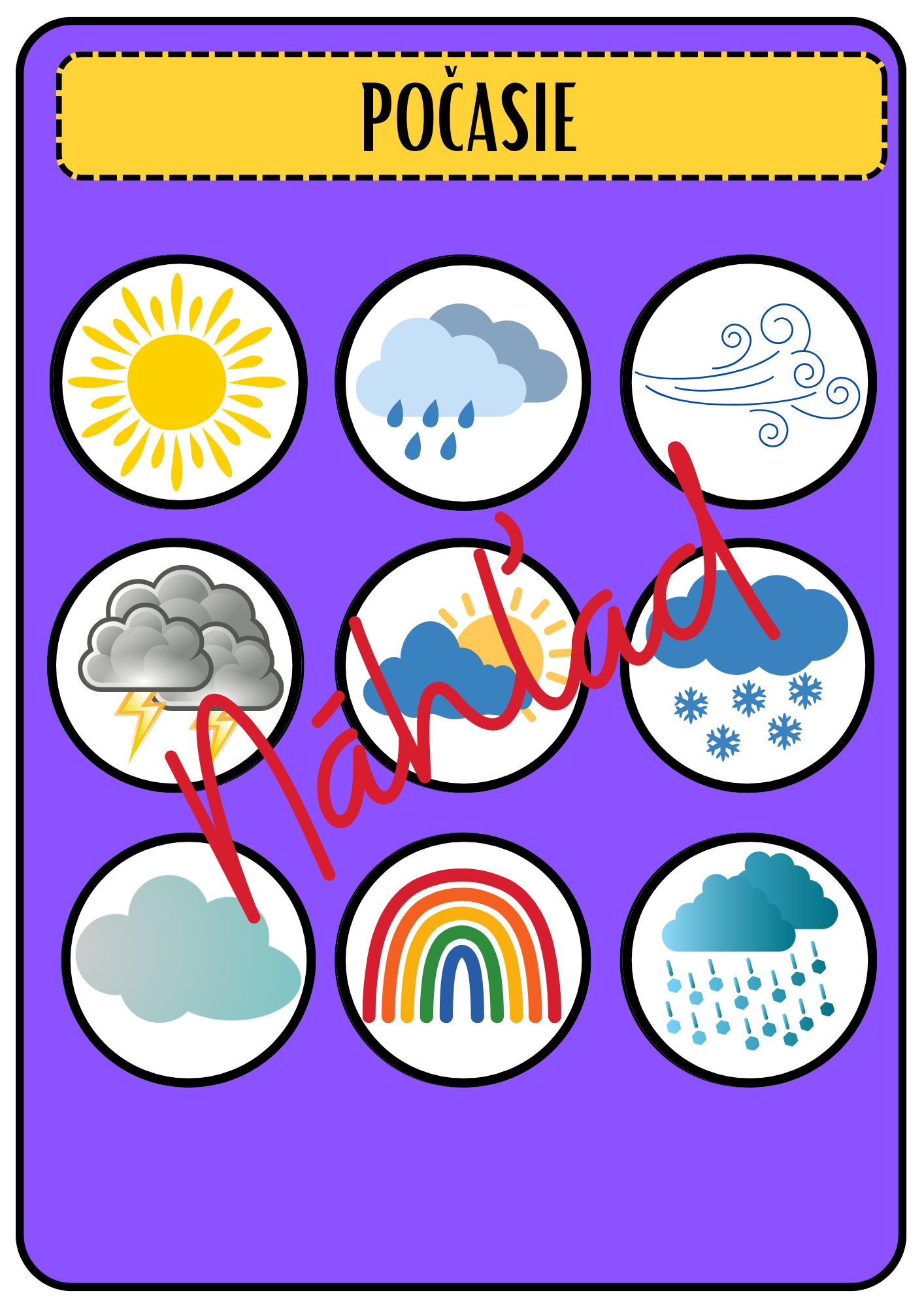 - počasie – 9 obrázkových kariet (1× A4)