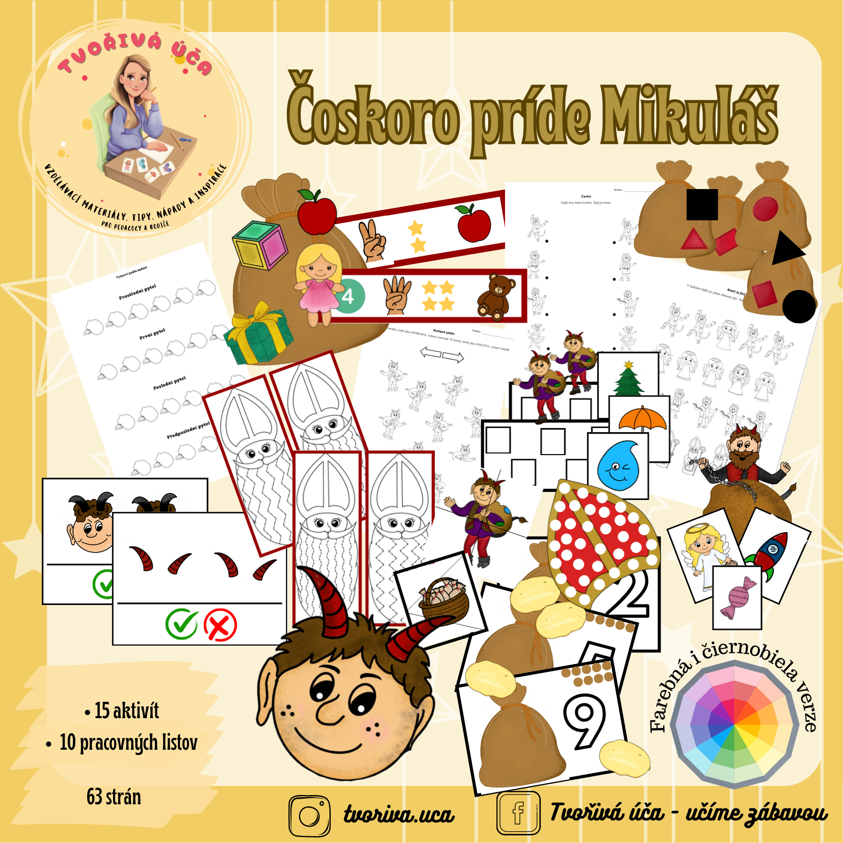 Nastal čas, kedy nás príde navštíviť Mikuláš so svojimi priateľmi: anjelom a čertom. Ja osobne mám túto tému 14 dní. Jeden týždeň ideme anjelikov a druhý týždeň ideme peklo. Samozrejme sa to všetko tak nejako prelína. Vždy si každý týždeň veľmi užijeme, zažijeme veľa srandy. Pretože by som chcela, aby ste si túto tému užívali naplno, pripravila som pre Vás niekoľko aktivít. Verím, že sa aktivity budú deťom páčiť a skvele doplnia Vašu prípravu.