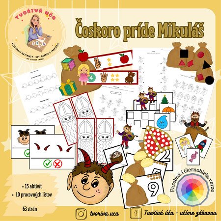 V súbore nájdete 15 zábavných aktivít a 10 pracovných listov. Celý súbor je vo farebnej i čiernobielej verzii.