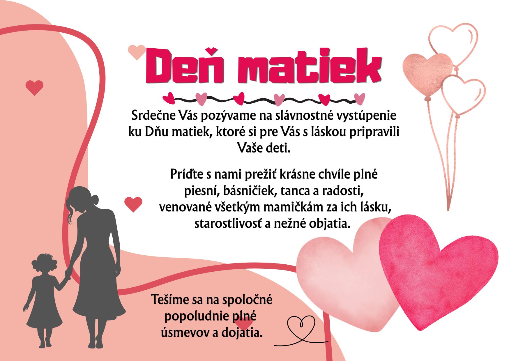 Deň matiek - oznam na vystúpenie