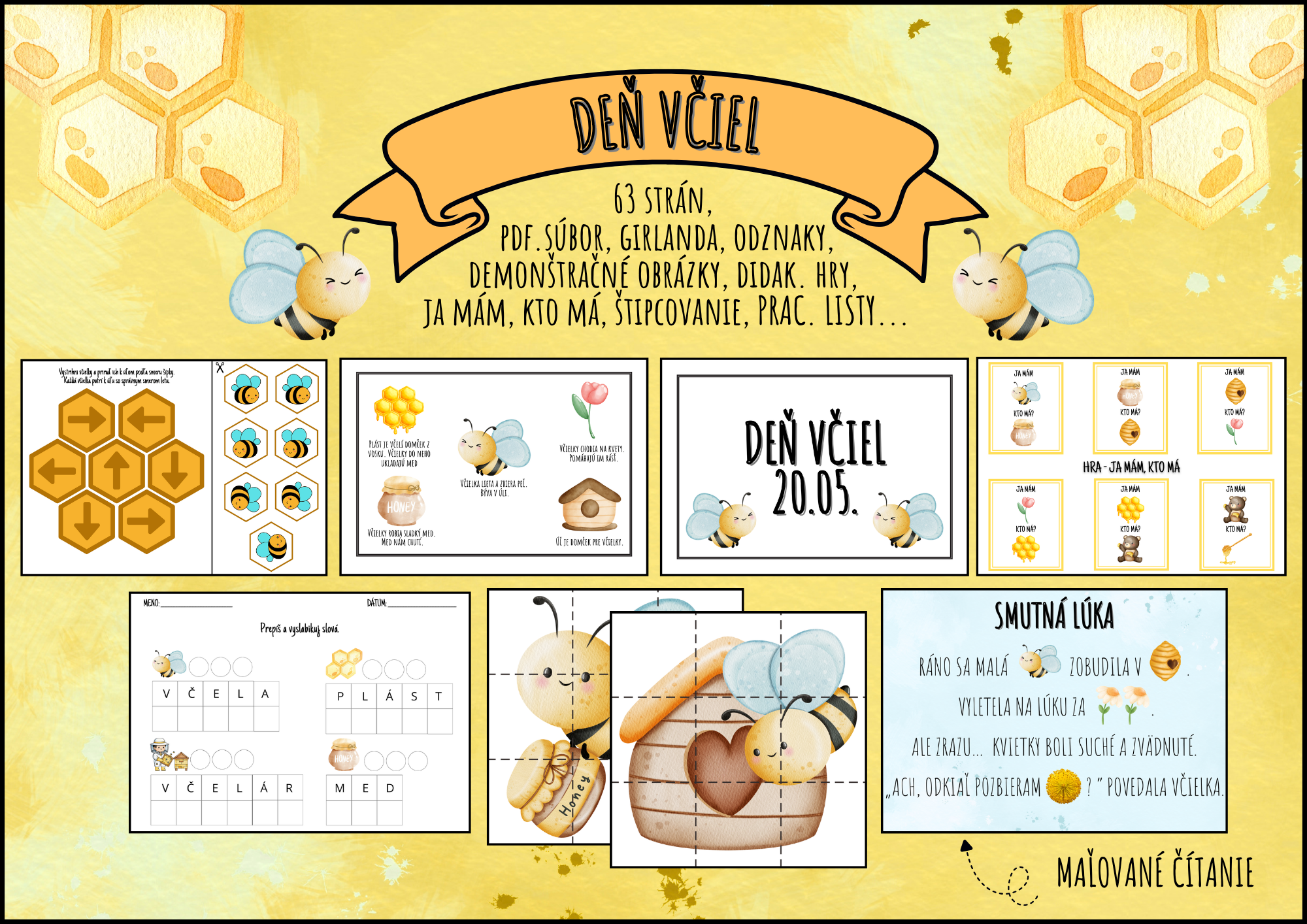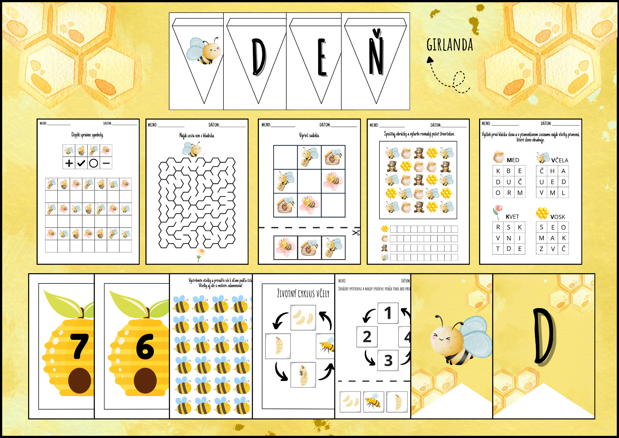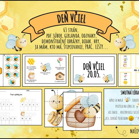 Milé pani učitel'ky, vychovávateľky, rodičia. Pripravila som si pre vás 64 strán pracovných listov na tému „Deň včiel, včielky.” V tomto PDF. súbore nájdete: