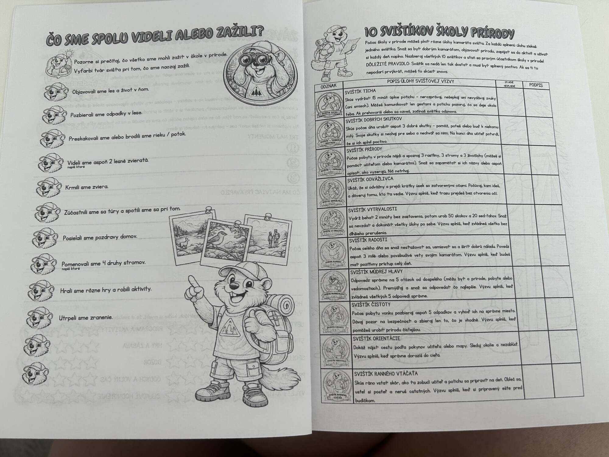 - maskota (svišťa), ktorý sprevádza deti celým denníkom