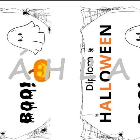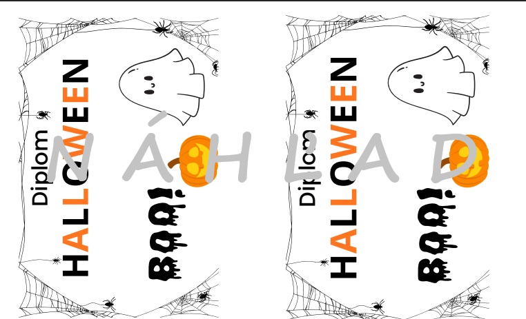 Diplom na Halloween. V materiáli sú dve strany, na prvej strane v menšom prevedení (5ks/A4 strana), na druhej strane väčšie prevedenie 2ks /A4 (rozmer diplomu A5).