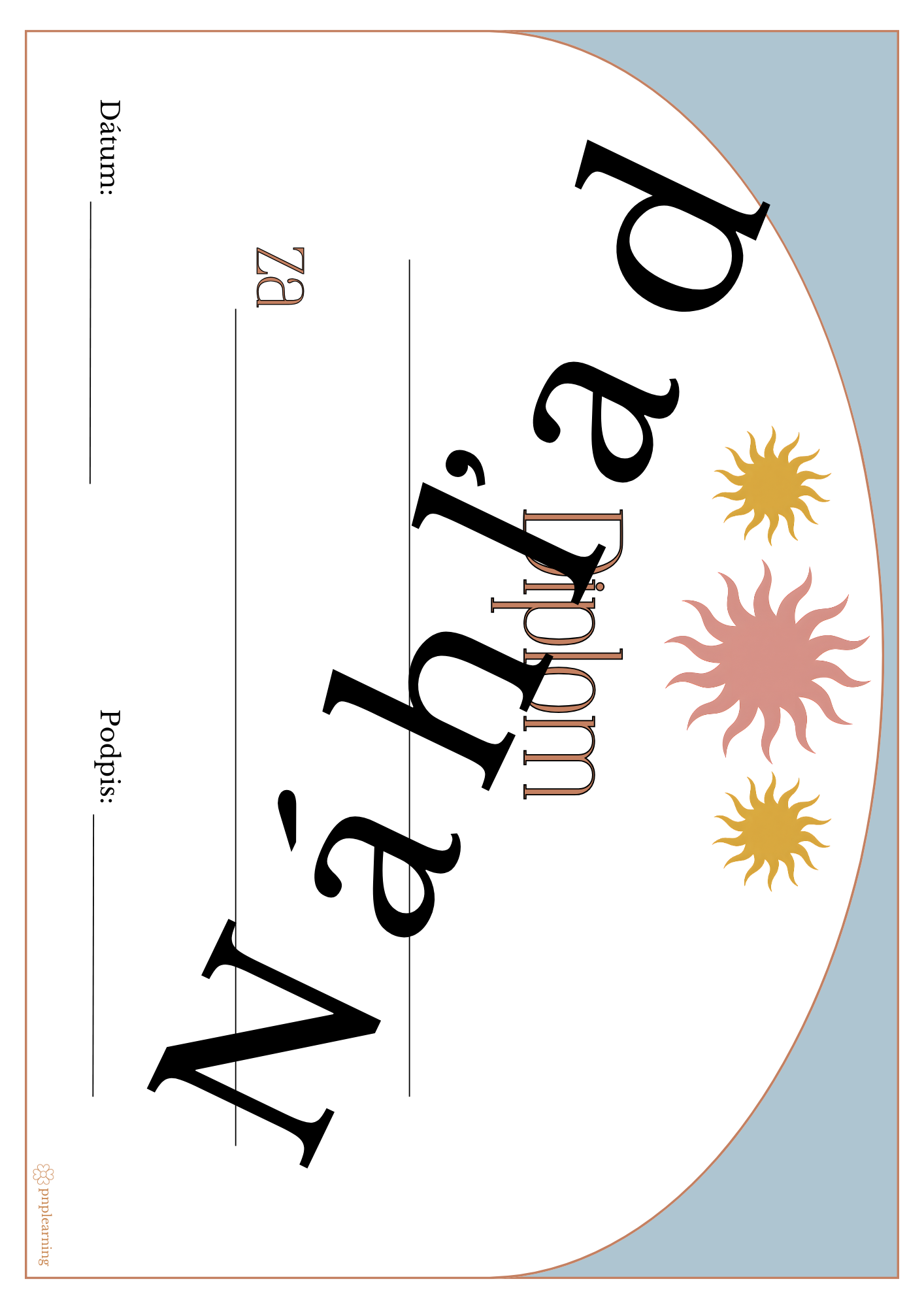 - Dopíšte do diplomu, komu ho udeľujete (meno žiaka) a za čo diplom udeľujete (napríklad za snahu, účasť, 1. miesto a pod.). Potom pridajte dátum a svoj podpis. Hotový diplom si môžete dať ešte zalaminovať, aby bol pevnejší, odolnejší a pre deti mal väčšiu hodnotu ako spomienka.