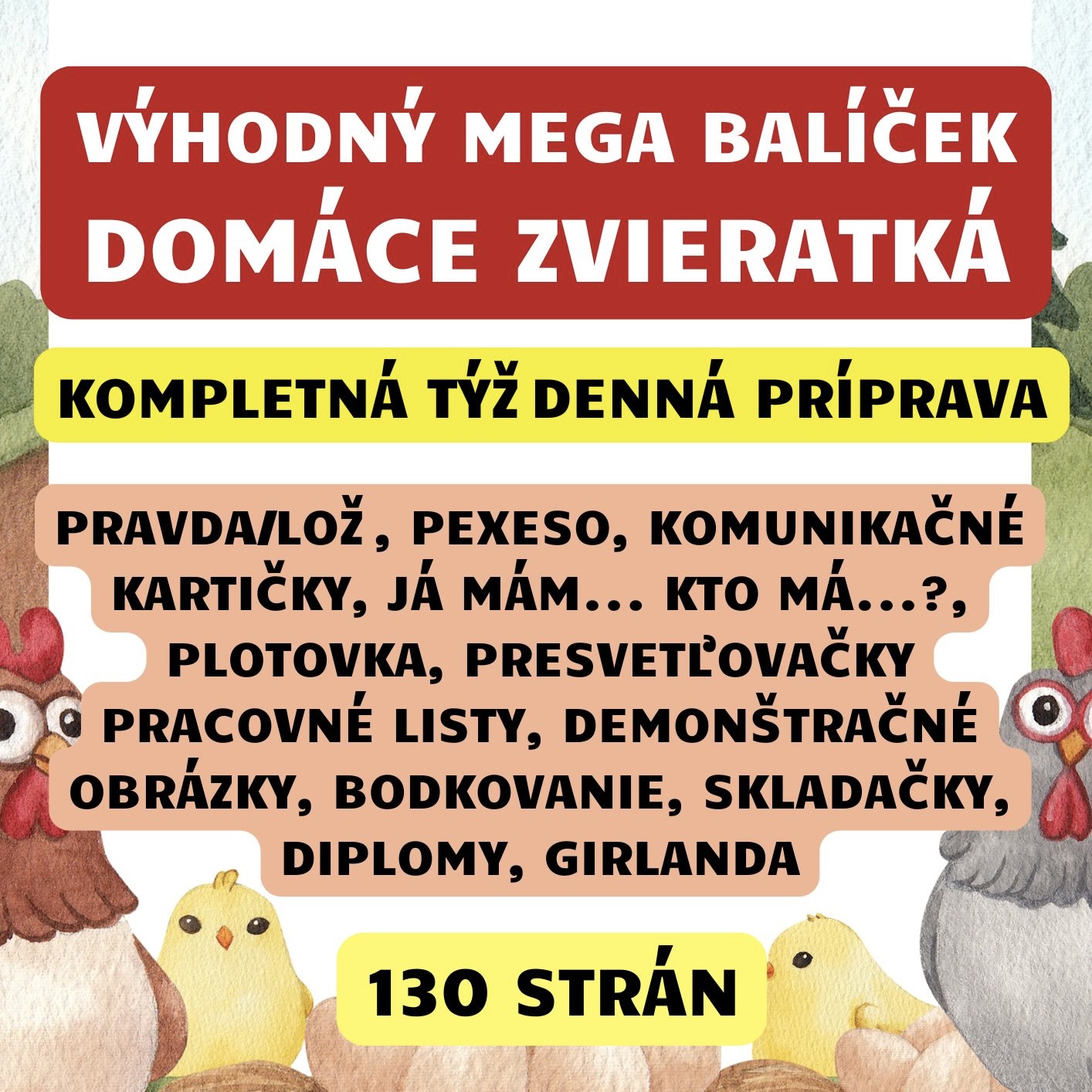Obsah súboru (130 strán)pracovné listyja mám... kto má...?bodkovaniekomunikačné kartičkypexesoskladačkydemonštračné obrázkypresvetľovačkyKOMPLETNÁ TÝŽDENNÁ PRÍPRAVApravda/ložplotovkagirlandadiplomy