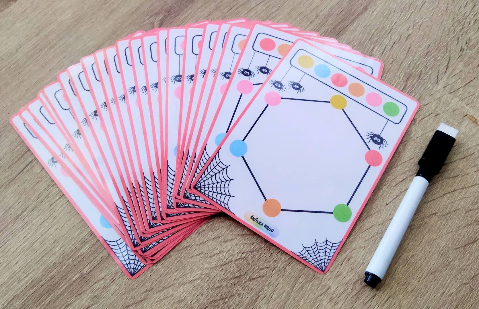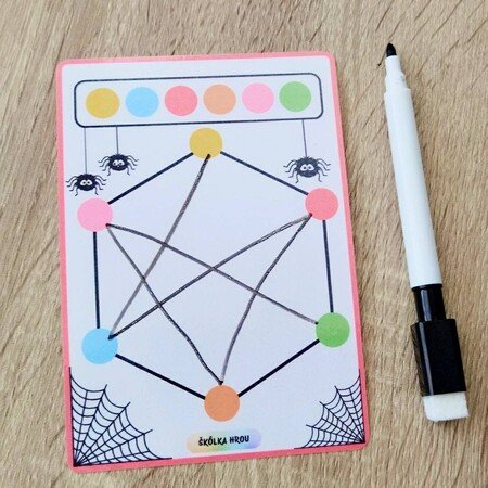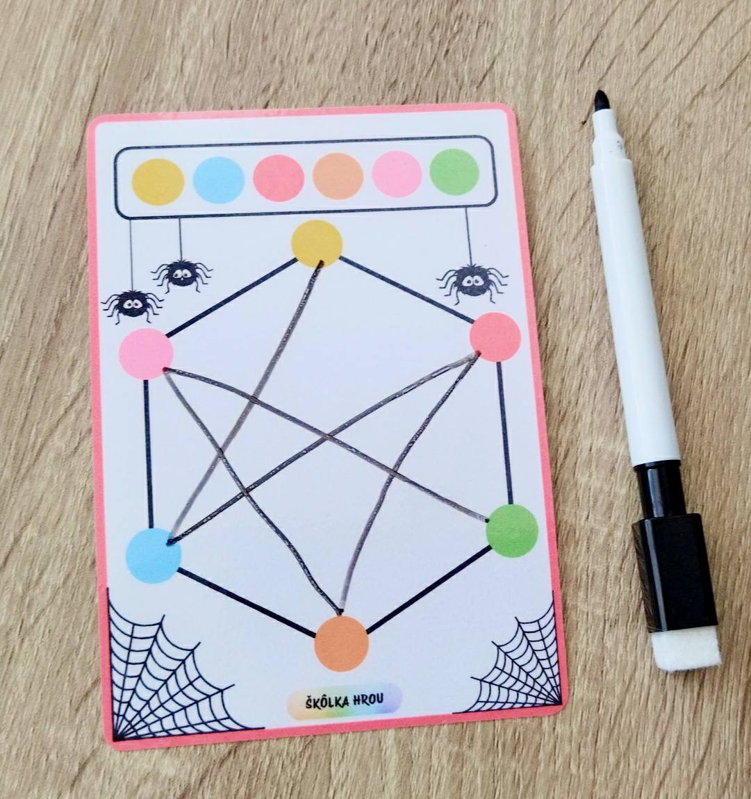 Úlohou dieťaťa je vytvoriť pavučinku podľa určenej farebnej postupnosti.
