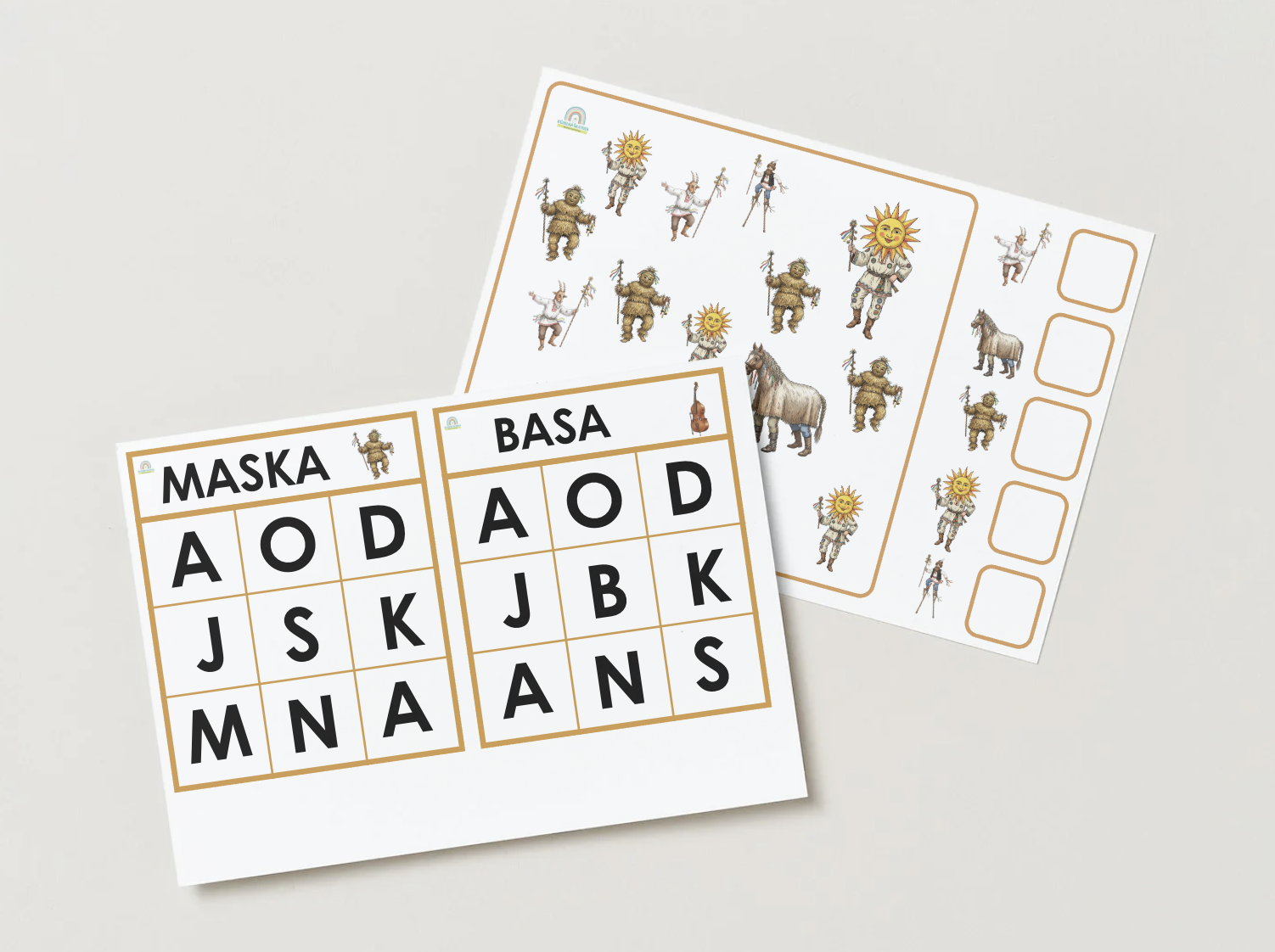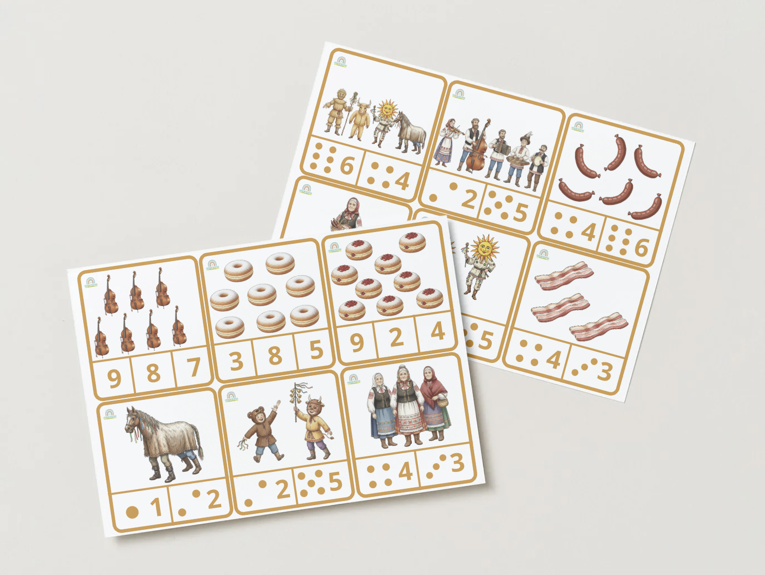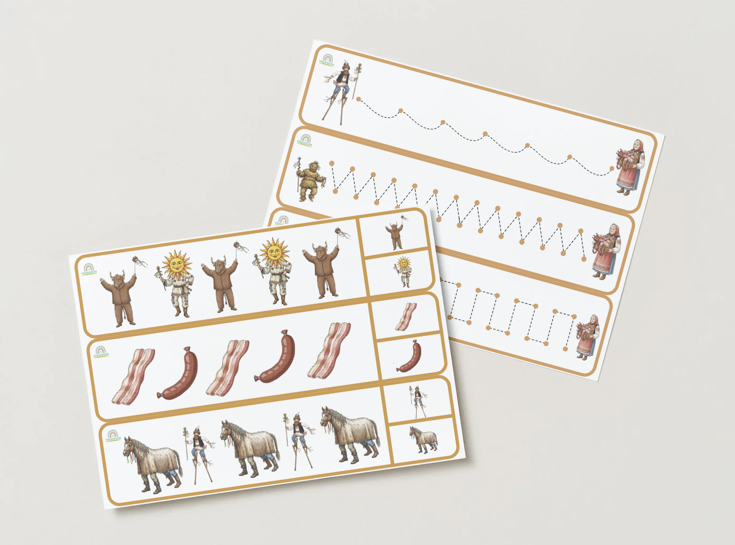 Pripravila som tento komplexný materiál, aby som deťom priblížila čaro „bláznivých dní“ pred pôstom. Môj súbor som navrhla tak, aby sa zameriaval na rozvoj kognitívnych schopností, jemnej motoriky a logického myslenia cez hravé témy šišiek, masiek a karnevalu.