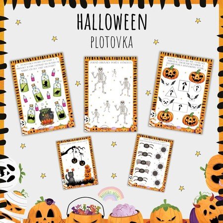 Súbor obsahuje 8 kariet so zábavnými úlohami na tému Halloween. Súčasťou súboru je aj diplom za splnenie úloh. Pomocou hravých úloh si deti precvičia nielen zrakové a sluchové vnímanie, ale aj predmatematické zručnosti, priestorovú orientáciu a logické myslenie.