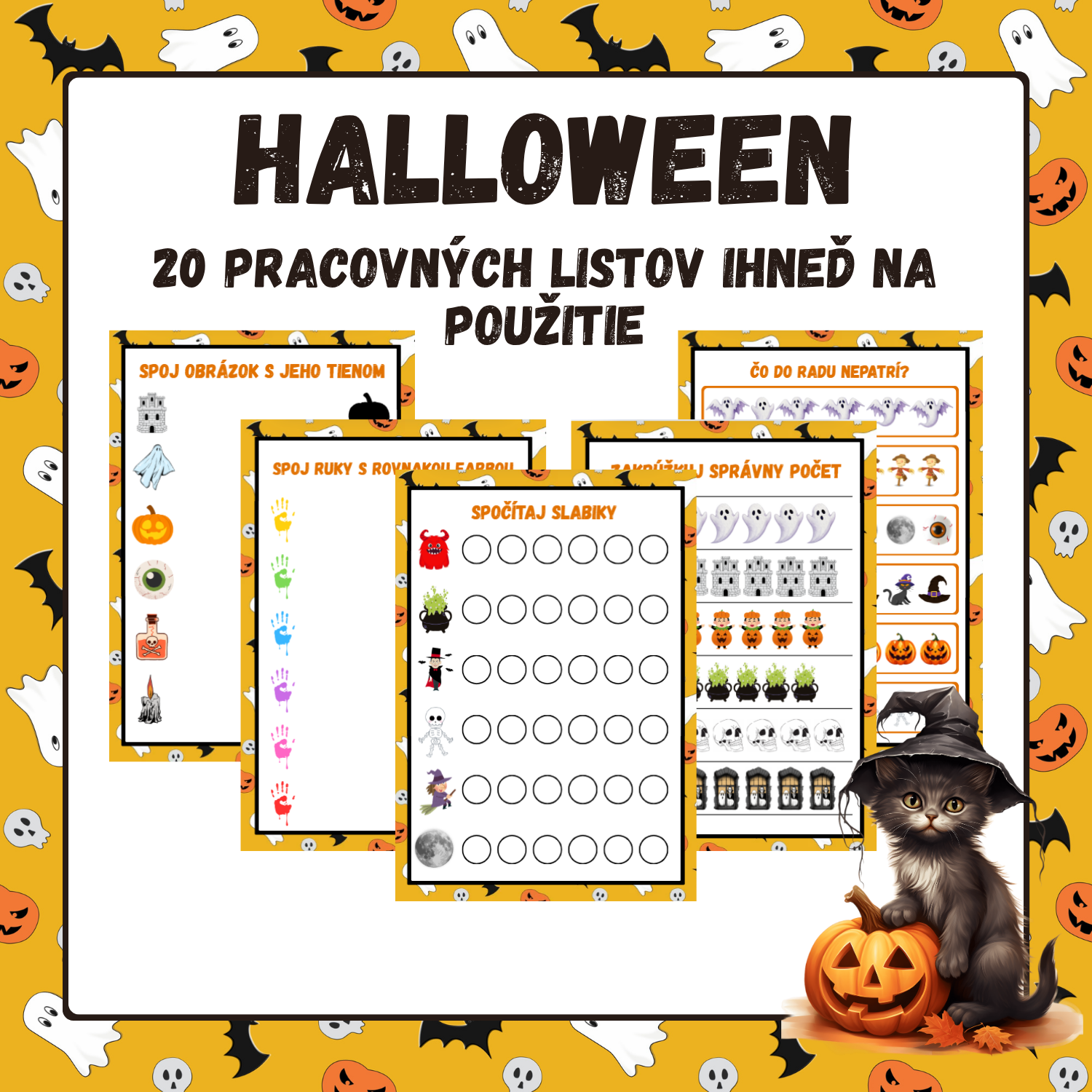 Hľadáte premyslený, hravý a pestrý materiál, ktorý deti nielen zabaví, ale aj niečo naučí? Prinášam vám pracovné listy na tému Halloween, ktoré vám ušetria čas a uľahčia prácu.