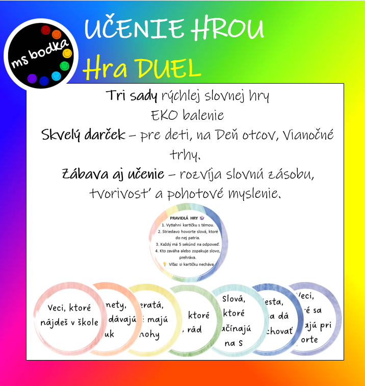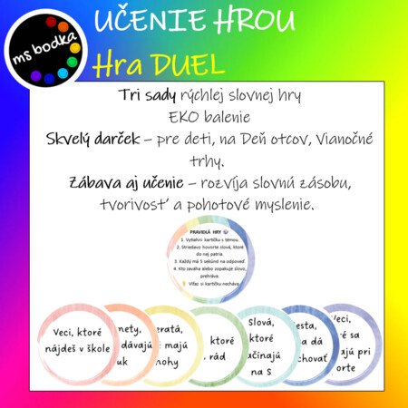 Do školy, družiny, na výlety, k babke, na oslavy… kdekoľvek sa chcete zabaviť a rozvíjať slovnú zásobu.