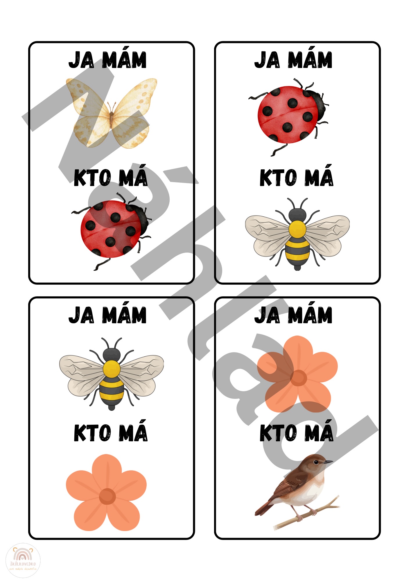 Väčšinu pracovných listov aj aktivít som sa snažila vytvoriť aj v čiernobielej verzii. Deti si ich tak budú môcť aj vyfarbiť :)