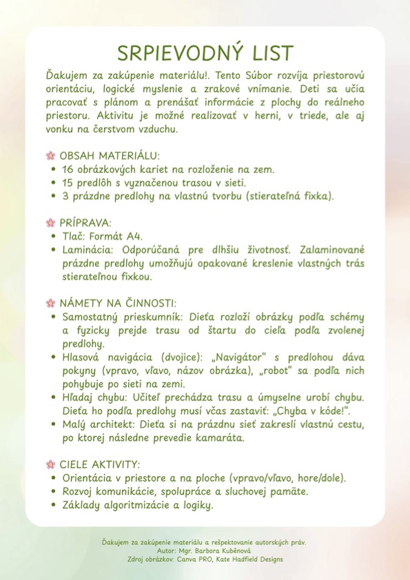 Súbor hravou formou rozvíja priestorovú orientáciu, logické myslenie a základy programovania u detí predškolského a mladšieho školského veku.