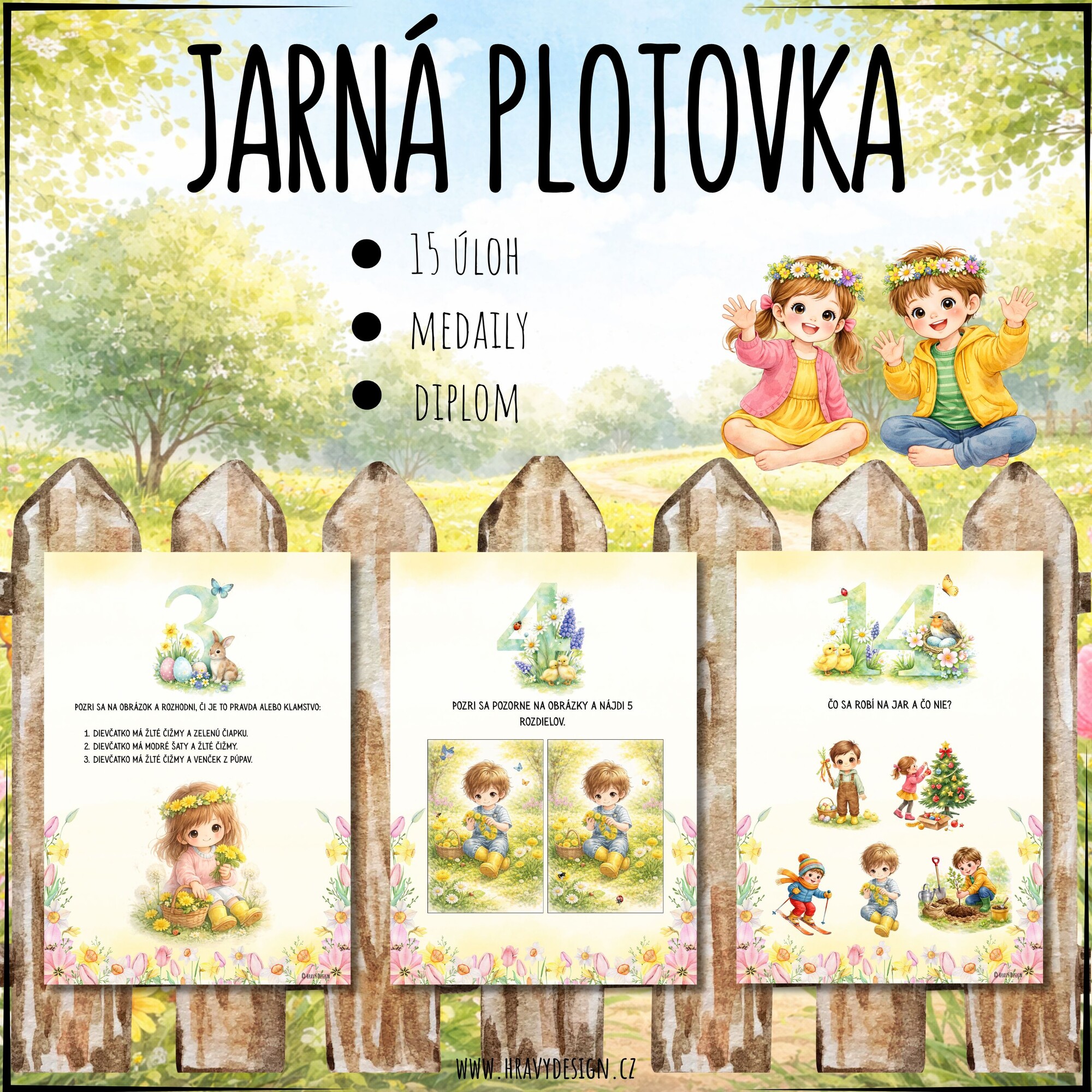 Jarná plotovka je séria jednoduchých úloh, ktoré stačí vytlačiť a rozmiestniť na plot, do záhrady alebo pozdĺž cesty.