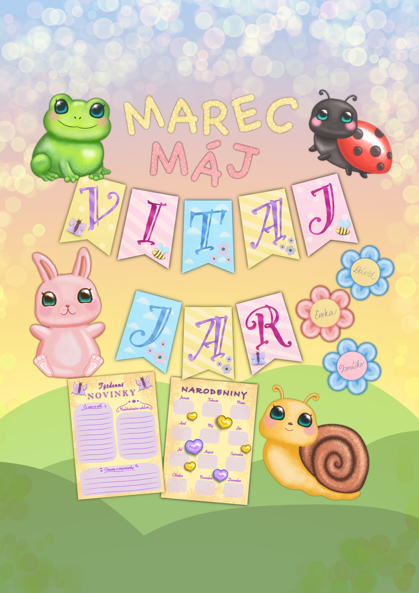 • 8 strán - nápis VITAJ JAR 🌸 (s farebným pozadím) - tlač na obyčajný papier
