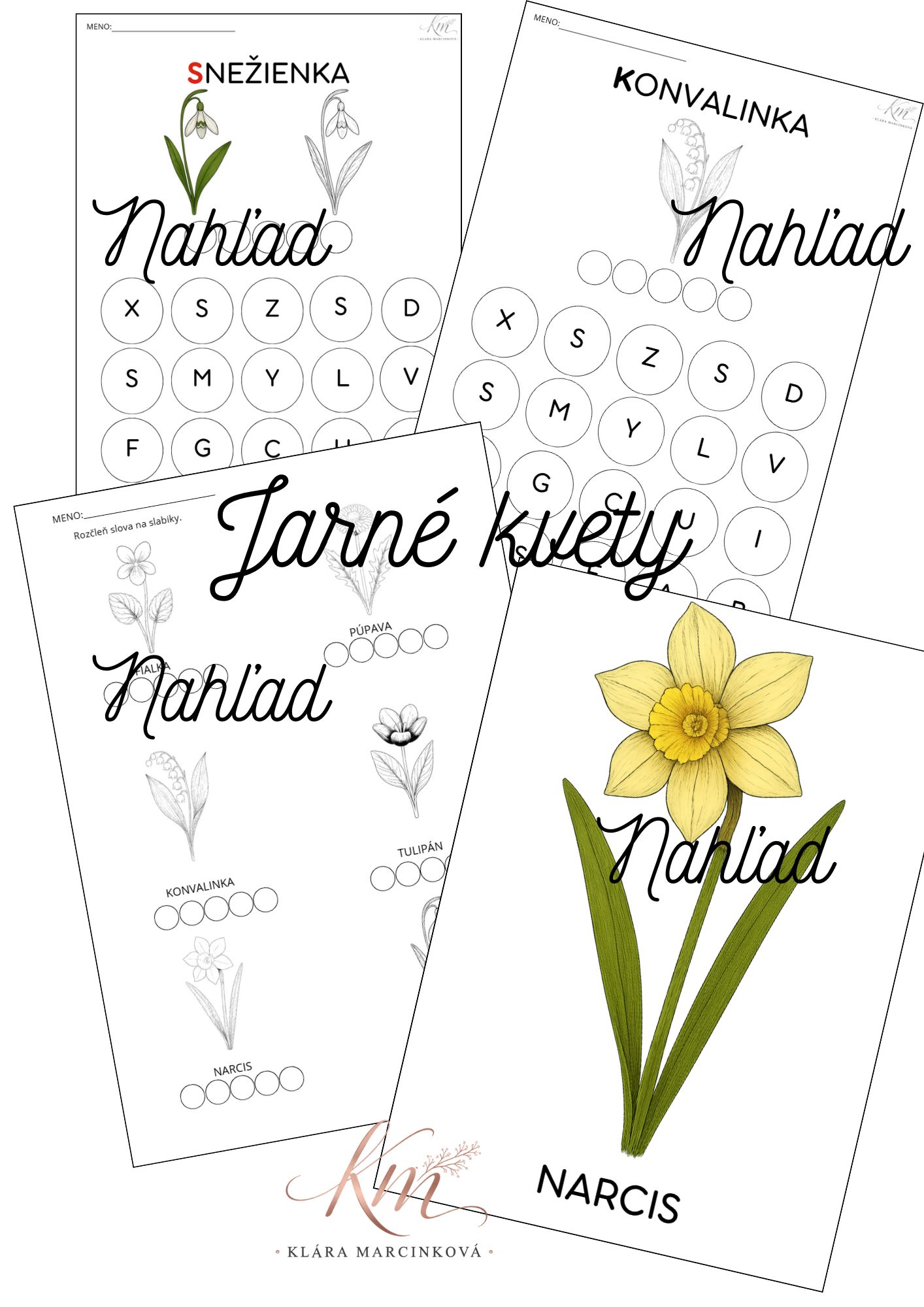 - demonštračné obrázky vybraných jarných kvetov.