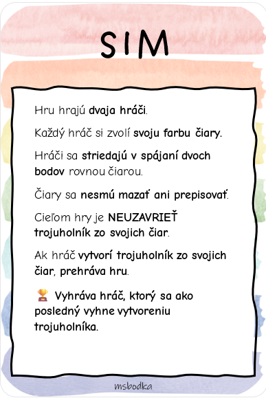Hry sú navrhnuté na laminovanie a písanie stierateľnou fixkou, vďaka čomu ich možno používať počas celého školského roka – v modernej podobe pre dnešné deti a bez zbytočného odpadu.