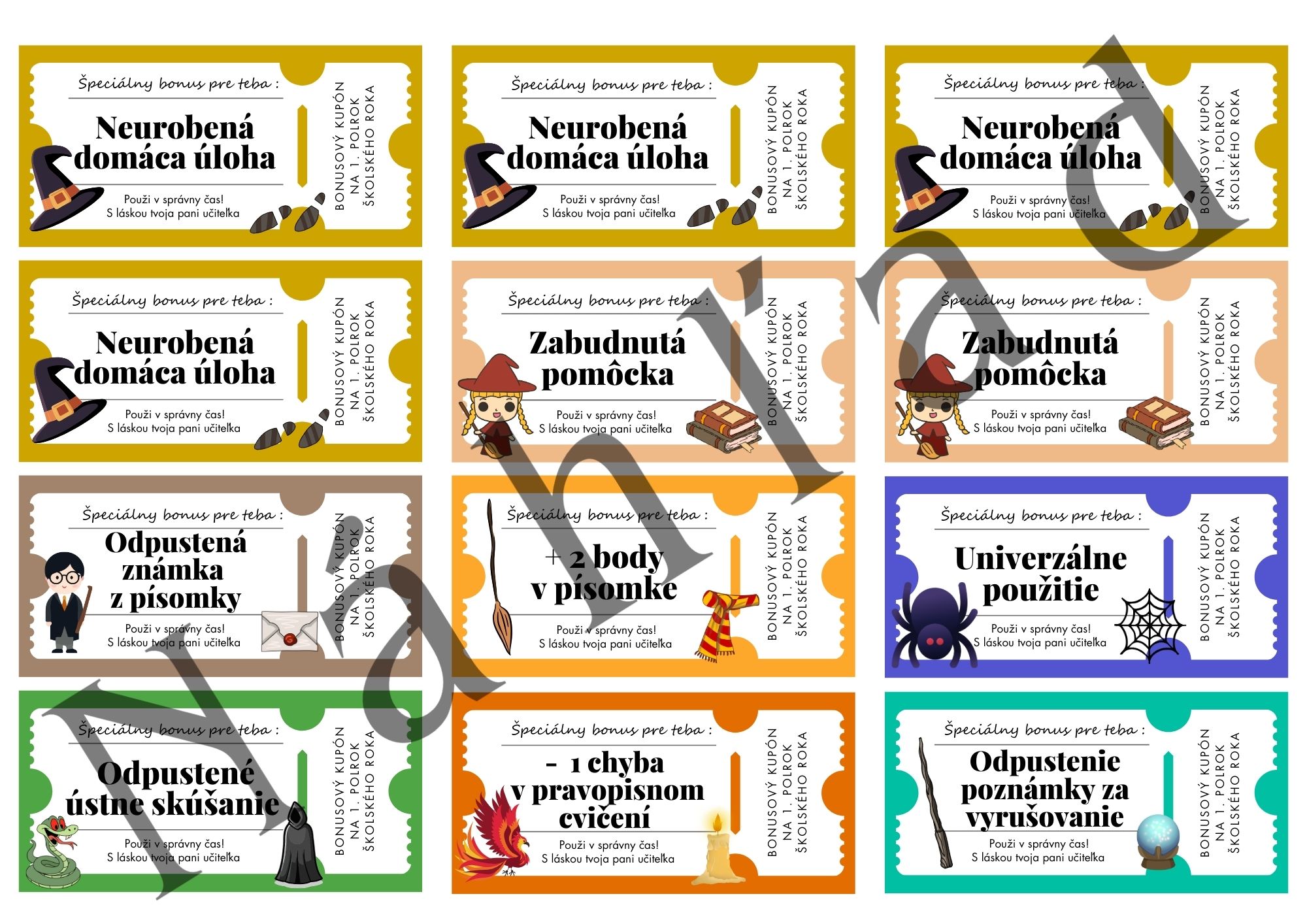 Kupóny pre žiakov - čarodejnícky motív