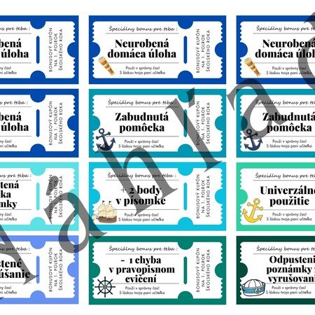 Kupóny pre žiakov (námornícky motív) - malá záchrana do školy 😉