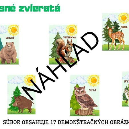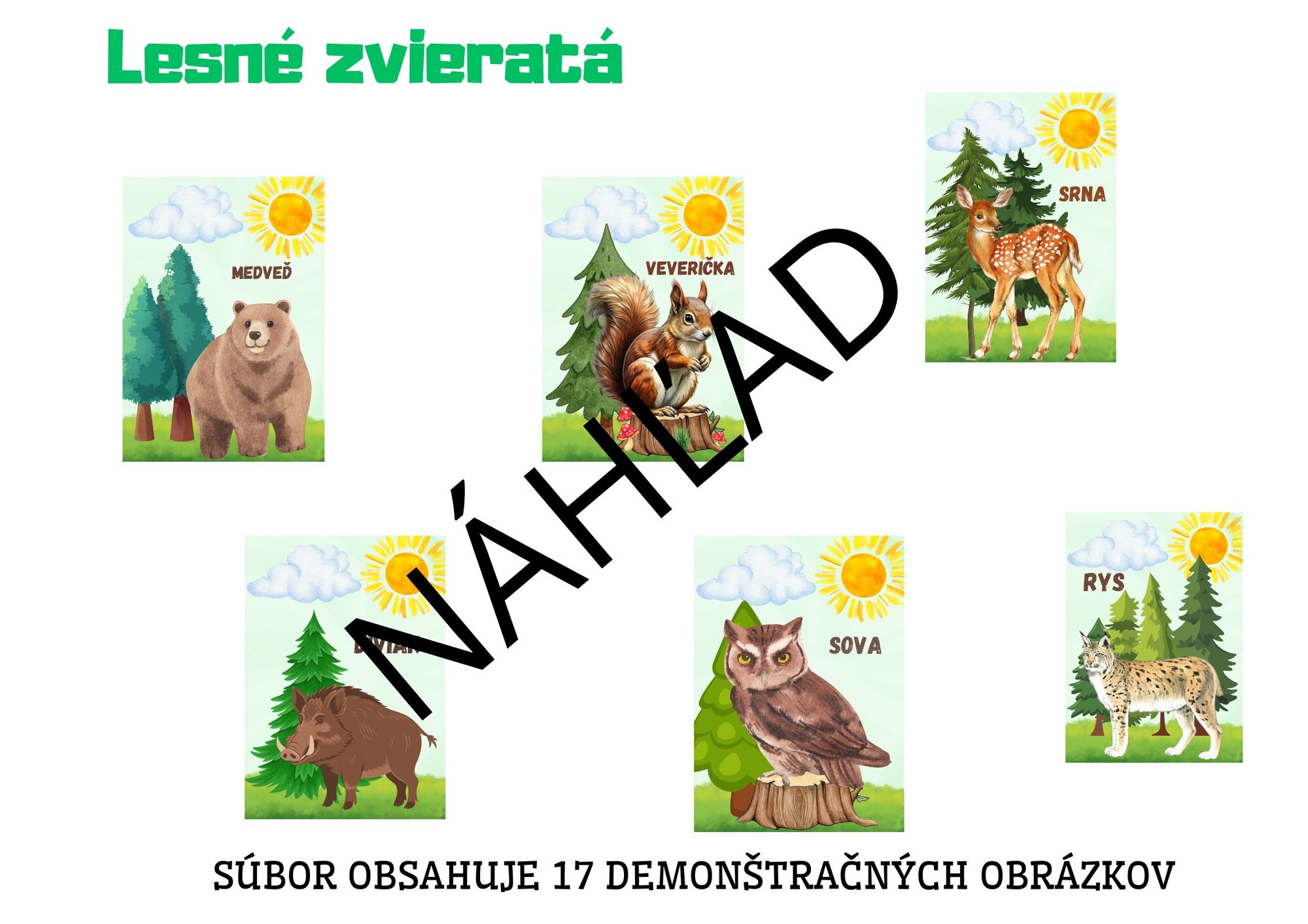 PONÚKAM SÚBOR LESNÉ ZVIERATKÁ, V KTOROM NÁJDETE KRÁSNE FAREBNÉ DEMONŠTRAČNÉ OBRÁZKY VHODNÉ NA PRÁCU S DEŤMI. MATERIÁL JE IDEÁLNY NA TÉMU LES A LESNÉ ZVIERATKÁ, VYUŽITEĽNÝ PRI RÔZNYCH AKTIVITÁCH V MATERSKEJ ŠKOLE.