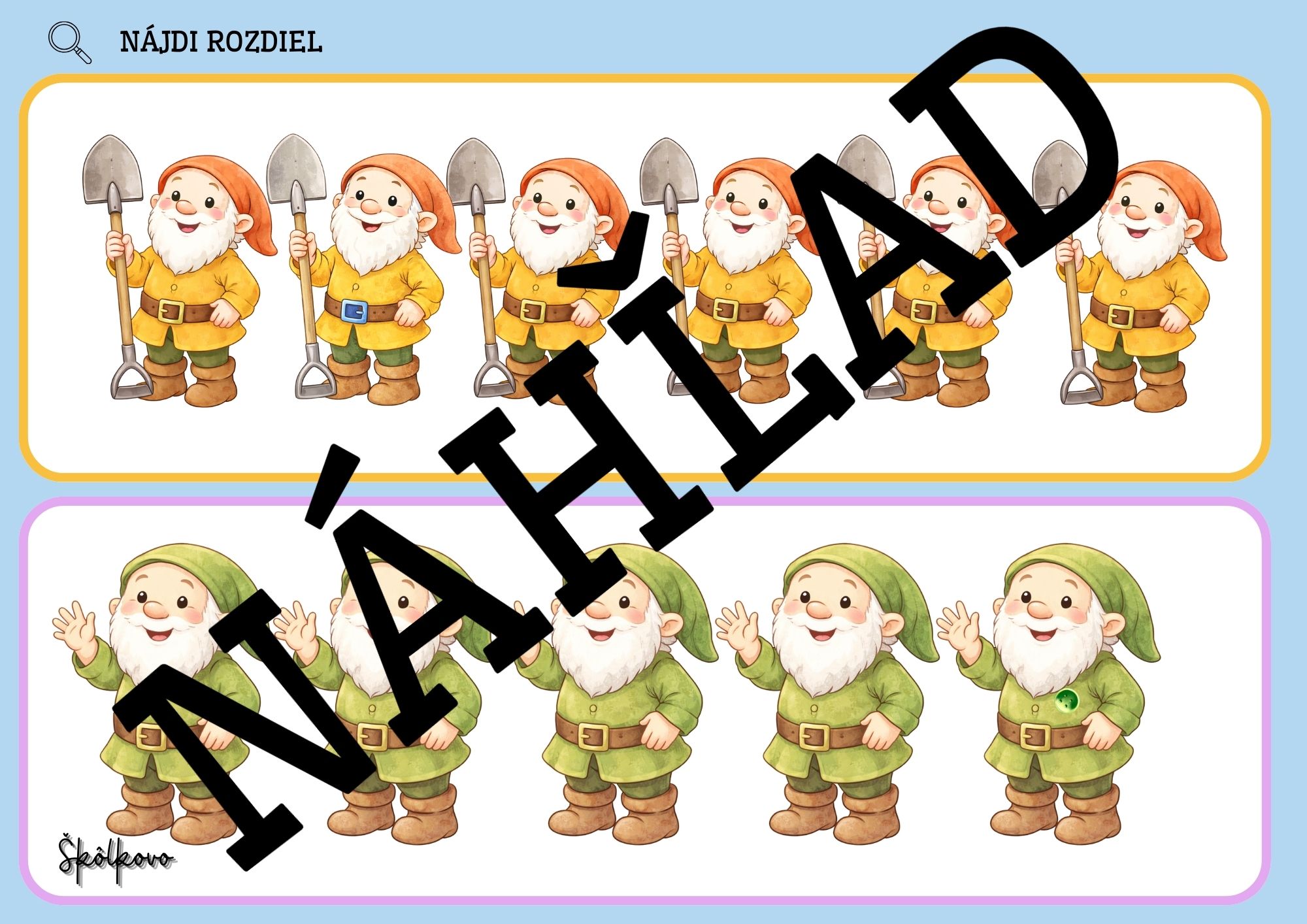 - SNEHULIENKA A SEDEM TRPASLÍKOV - plagát, puzzle, pracovný list-počítanie do 7, omaľovánka, nájdi rozdiel