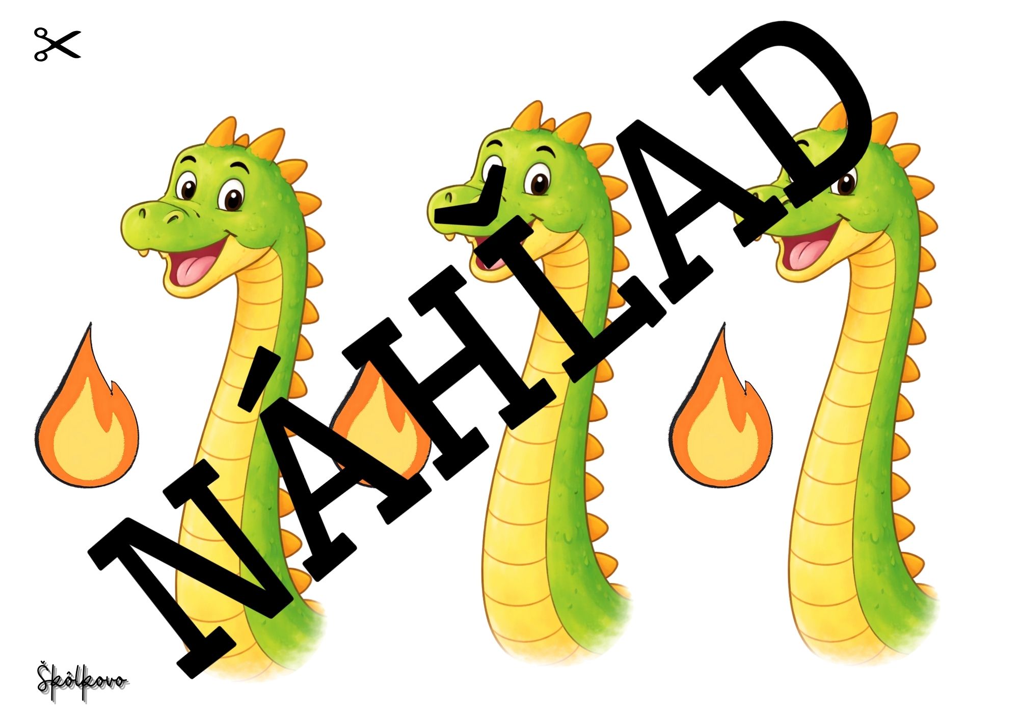 - ROZPRÁVKA O PRINCEZNEJ A ŠESŤHLAVOM DRAKOVI-plagát, puzzle, omaľovánka, Šesťhlavý drak na vystrihnutie a priraďovanie počtu hláv podľa hodu kockou