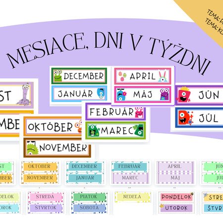 blíži sa začiatok šk. roka a výzdoba triedy je pre nás vždy dôležitá. V prílohe nájdete názvy mesiacov a dní. Vhodné pre všetky ročníky. Najmä pre ten 2. kedy sa žiaci učia práve orientovať v čase.