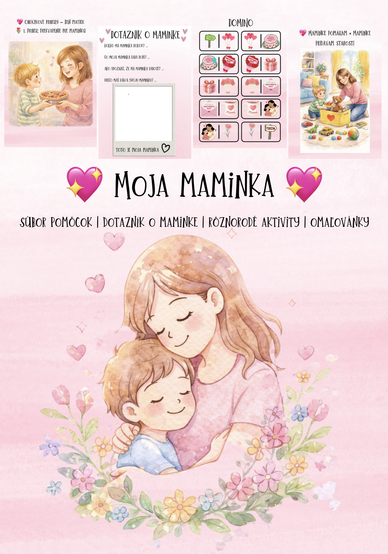 Tento materiál je ideálny ako tematický blok k Dňu matiek alebo ako súčasť portfólia detí, ktoré si môžu maminky odniesť ako krásnu pamiatku. 💗